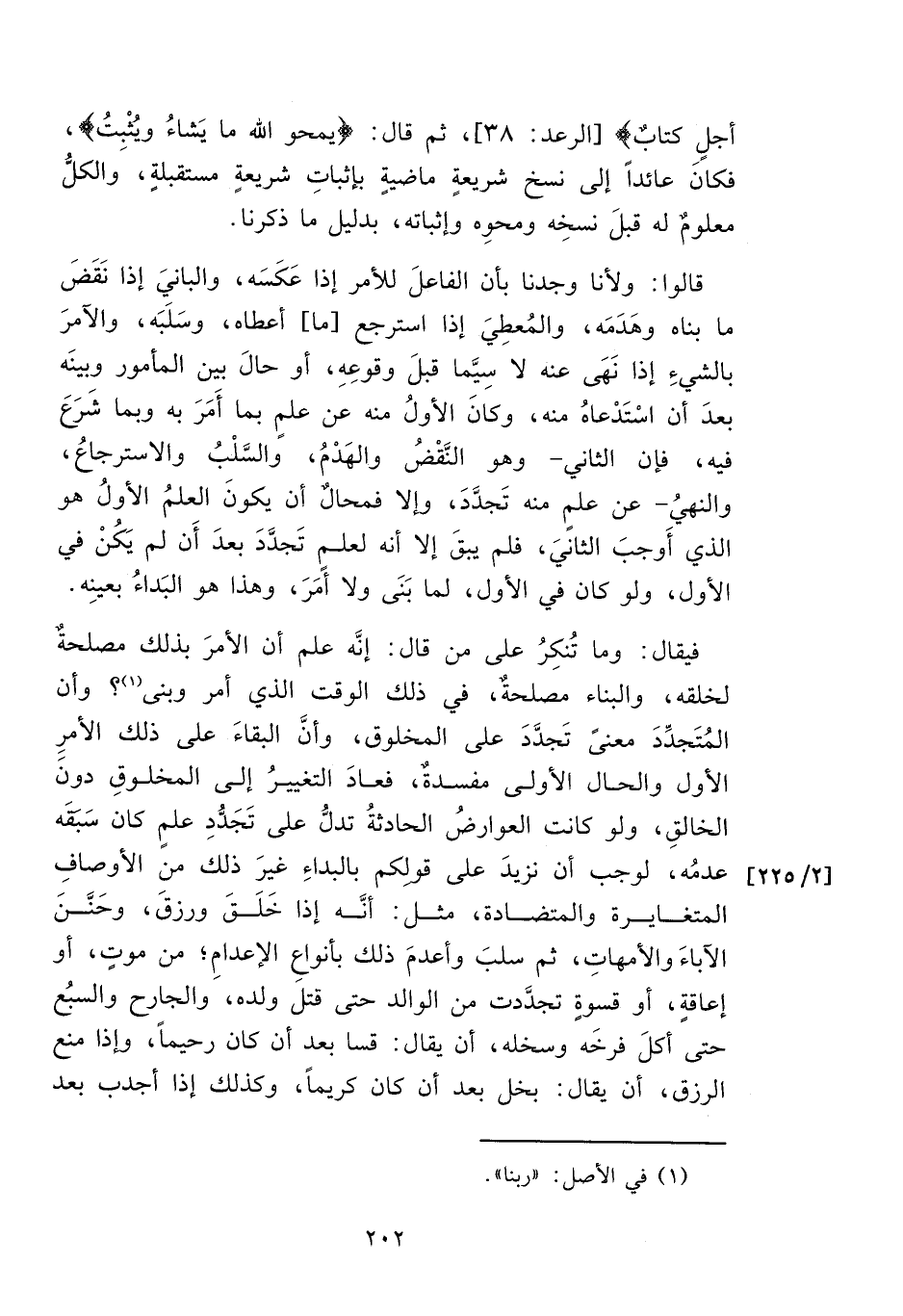 أَجَلٍ كِتَابٌ (٣٨)} [الرعد: ٣٨]، ثم قال: {يَمْحُو اللَّهُ مَا يَشَاءُ وَيُثْبِتُ} فكان عائداً إلى نسخ شريعةٍ ماضيةٍ بإثباتِ شريعةٍ مستقبلةٍ، والكلُّ معلومٌ له قبلَ نسخِه ومحوِه وإثباته، بدليل ما ذكرنا.