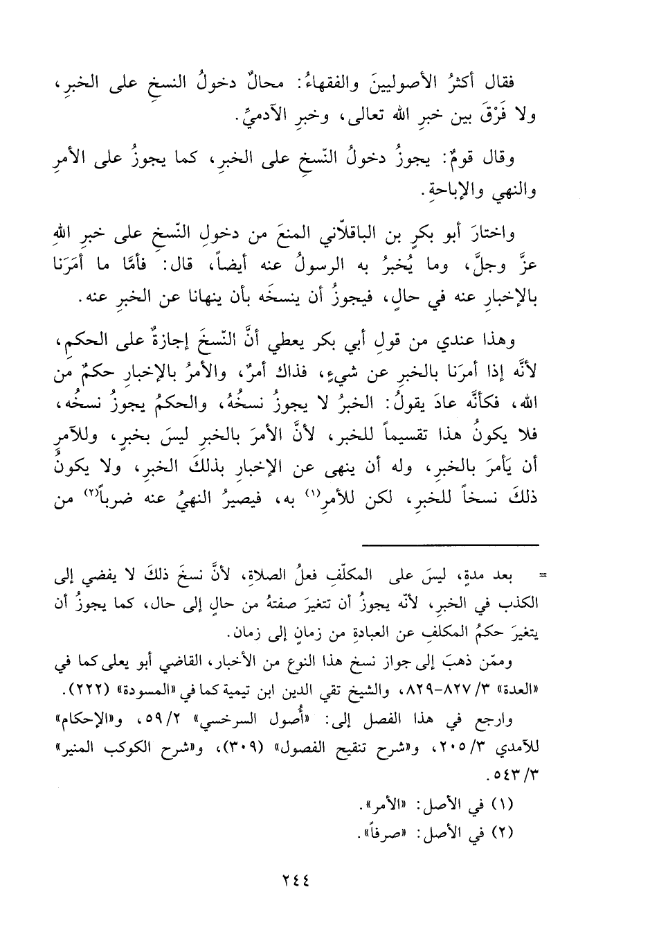 وارجع في هذا الفصل إلى: "أُصول السرخسي" ٥٩/ ٢، و"الإحكام" للآمدي ٣/ ٢٠٥، و"شرح تنقيح الفصول" (٣٠٩)، و"شرح الكوكب المنير" ٣/ ٥٤٣.