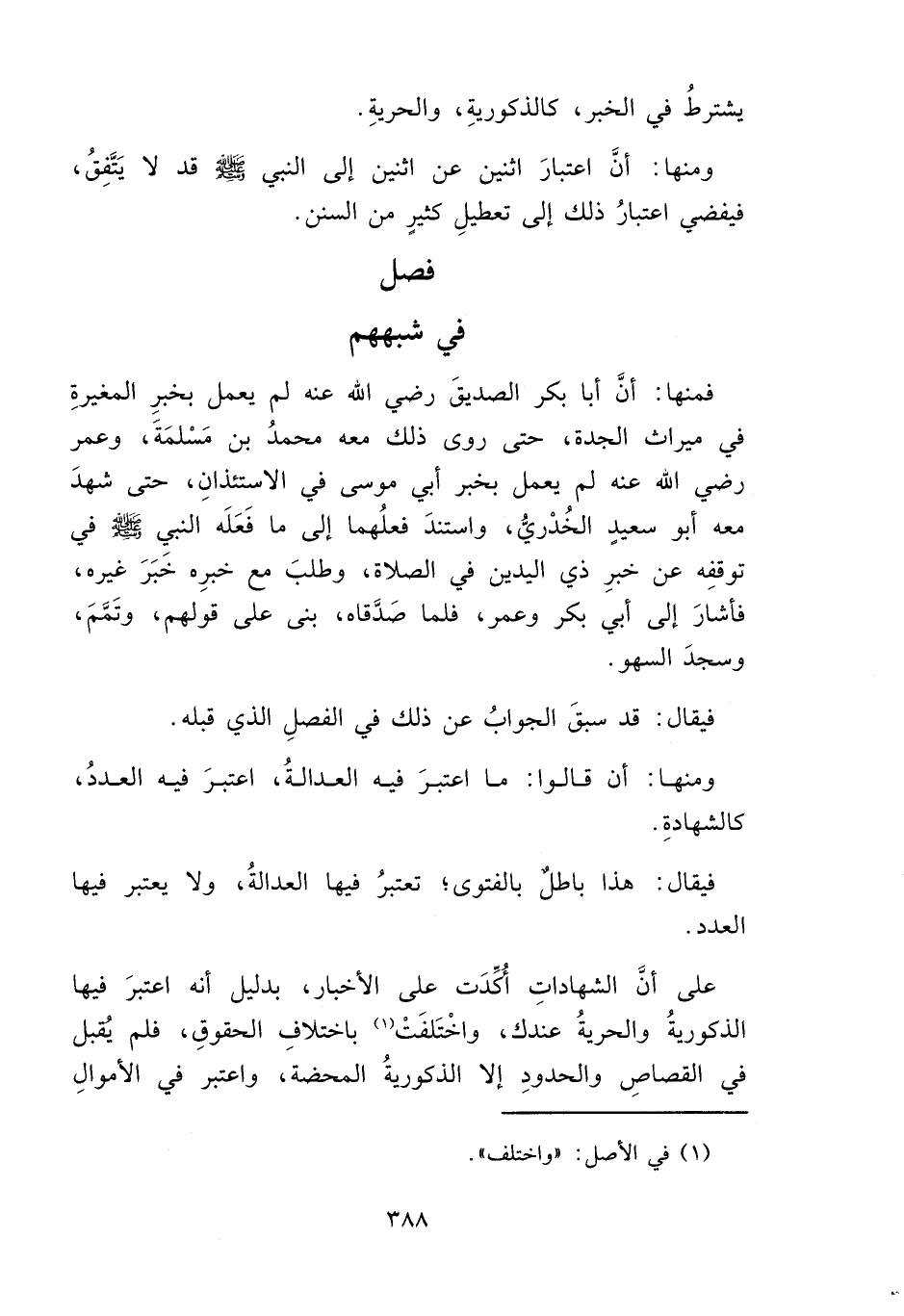 ومنها: أنَّ اعتبارَ اثنين عن اثنين إلى النبي - صلى الله عليه وسلم - قد لا يَتَّفِقُ، فيفضي اعتبارُ ذلك إلى تعطيلِ كثيرٍ من السنن.
