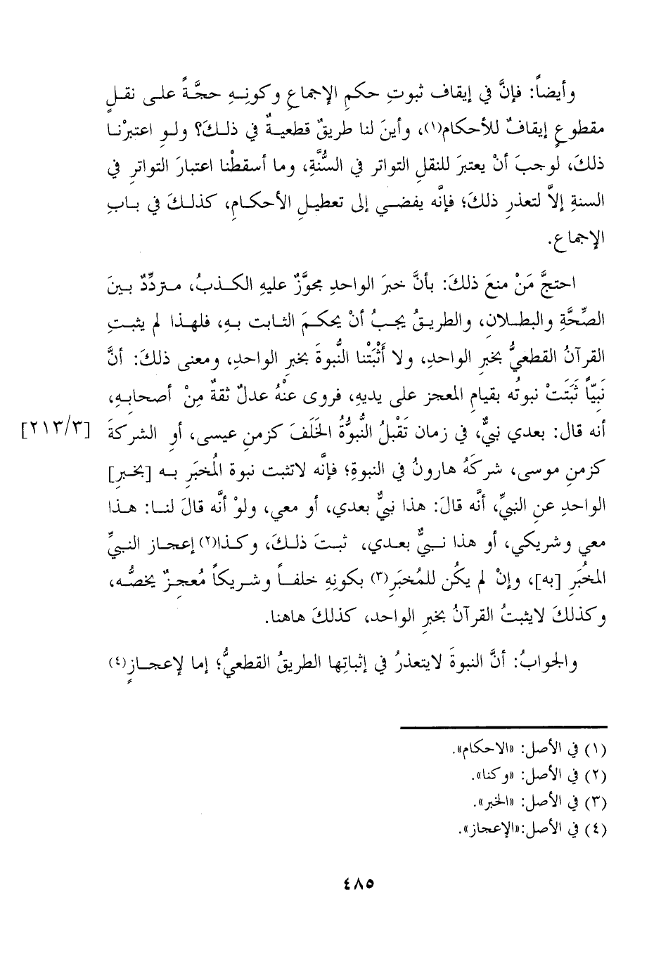 والجوابُ: أنَّ النبوهَ لايتعذرُ في إثباتِها الطريقُ القطعيُّ؛ إما لإعجازٍ (٤)