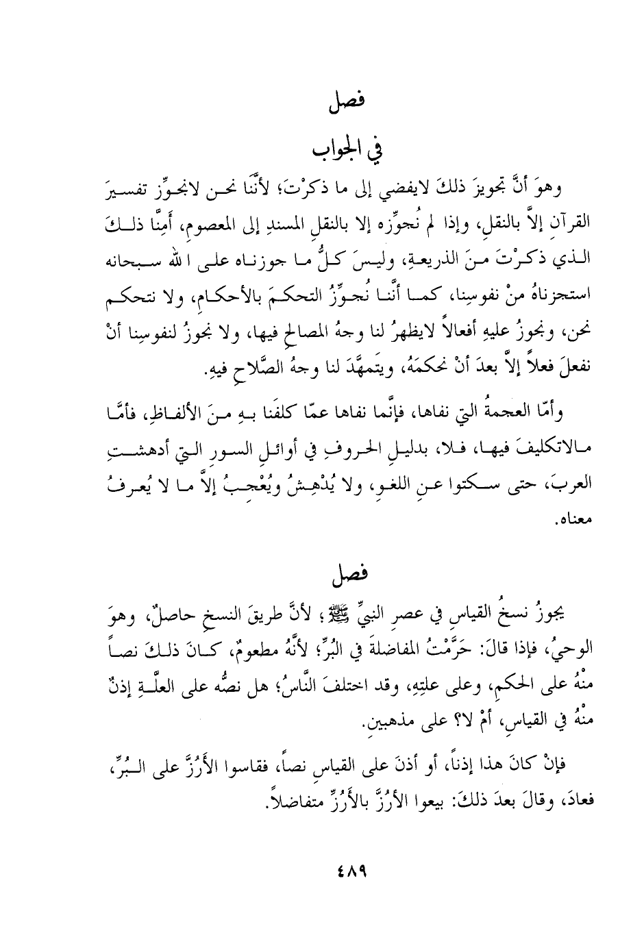 وهوَ انَّ تجويزَ ذلكَ لايفضي إلى ما ذكرْتَ؛ لأننا نحن لانجوِّز تفسيرَ القرآنِ إلاَّ بالنقلِ، وإذا لم نُجوِّزه إلا بالنقلِ المسندِ إلى المعصومِ، أَمِنا ذلكَ الذي ذكرْتَ منَ الذريعةِ، وليسَ كلُّ ما جوزناه على الله سبحانه استجزناهُ منْ نفوسِنا، كما أنَّنا نُجوِّزُ التحكمَ بالأحكامِ، ولا نتحكم نحن، ونجوزُ عليهِ أفعالاً لايظهرُ لنا وجهُ المصالح فيها، ولا نجوزُ لنفوسِنا أنْ نفعلَ فعلاً إلا بعدَ أنْ نحكمَهُ، ويتَمهَّدَ لنا وجهُ الصَّلاح فيهِ.