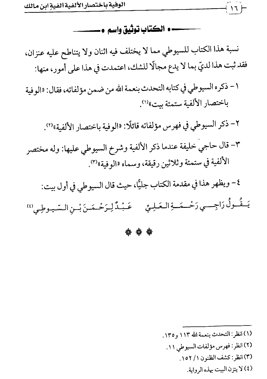 ٤. ويظهر هذا في مقدمة الكتاب جليًّا، حيث قال السيوطي في أول بيت: