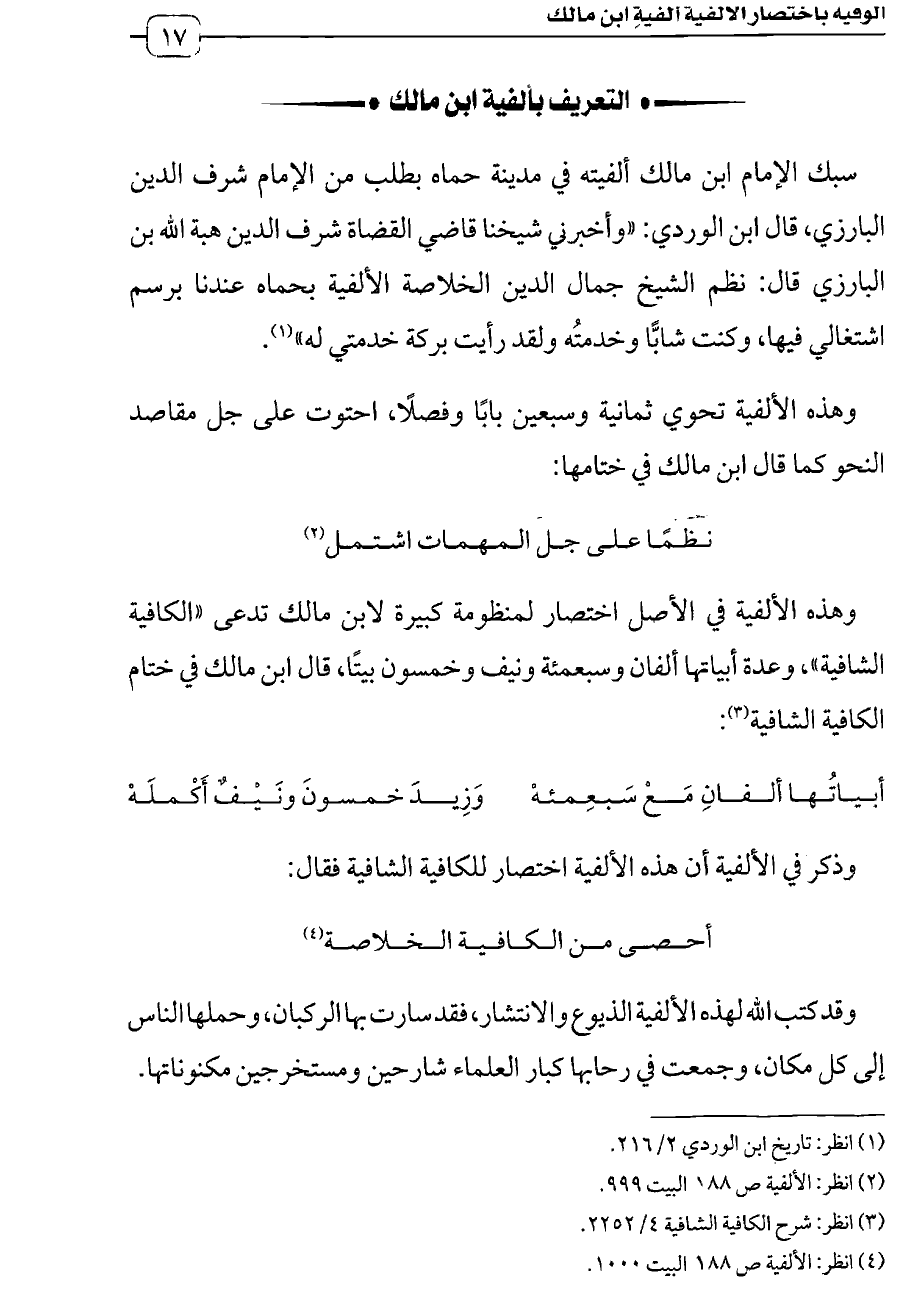 (¬٤) انظر: الألفية ص ١٨٨ البيت ١٠٠٠.