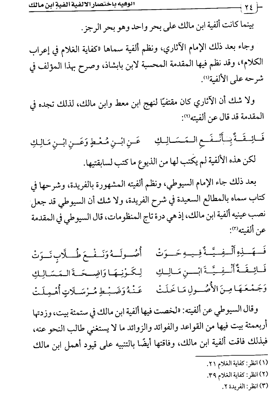فَائِقَةٌ بِأَنْفَعِ المَسَالِكِ ... عَنِ ابْنِ مُعْطٍ وَعَنِ ابْنِ مَالِكِ