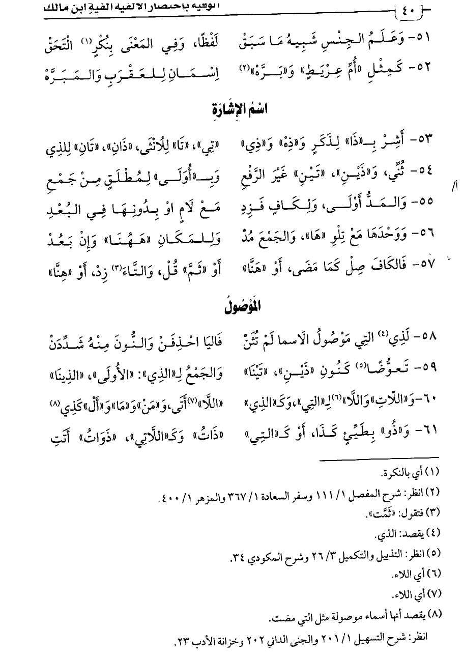 ٥٣. أَشِرْ بِـ"ذَا" لِذَكَرٍ وَ"ذِهْ" وَ"ذِي" ... "تِي"، "تَا" لِلُانْثَى، "ذَانِ"، "تَانِ" لِلذِي