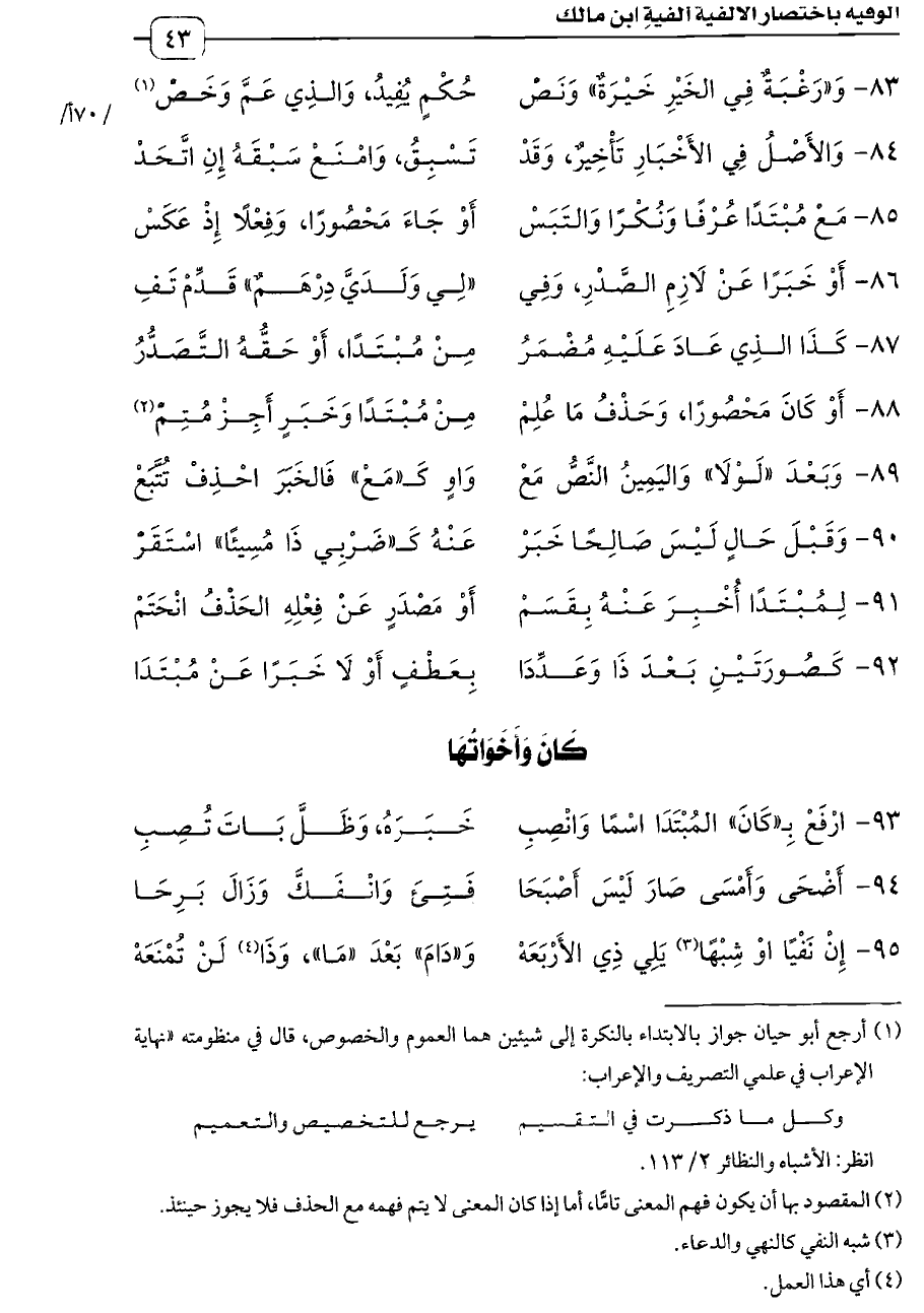 ٩٣. ارْفَعْ بِـ"كَانَ" المُبْتَدَا اسْمًا وَانْصِبِ ... خَبَرَهُ، وَظَلَّ بَاتَ تُصِبِ