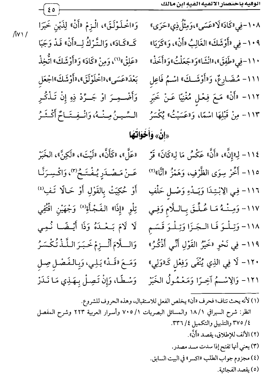١١٤. لِـ"إِنَّ"، "أَنَّ" عَكْسُ مَا لِـ"كَانَ" قَرّْ ... "عَلَّ"، "كَأَنَّ"، "لَيْتَ"، "لَكِنَّ"، الخَبَرْ