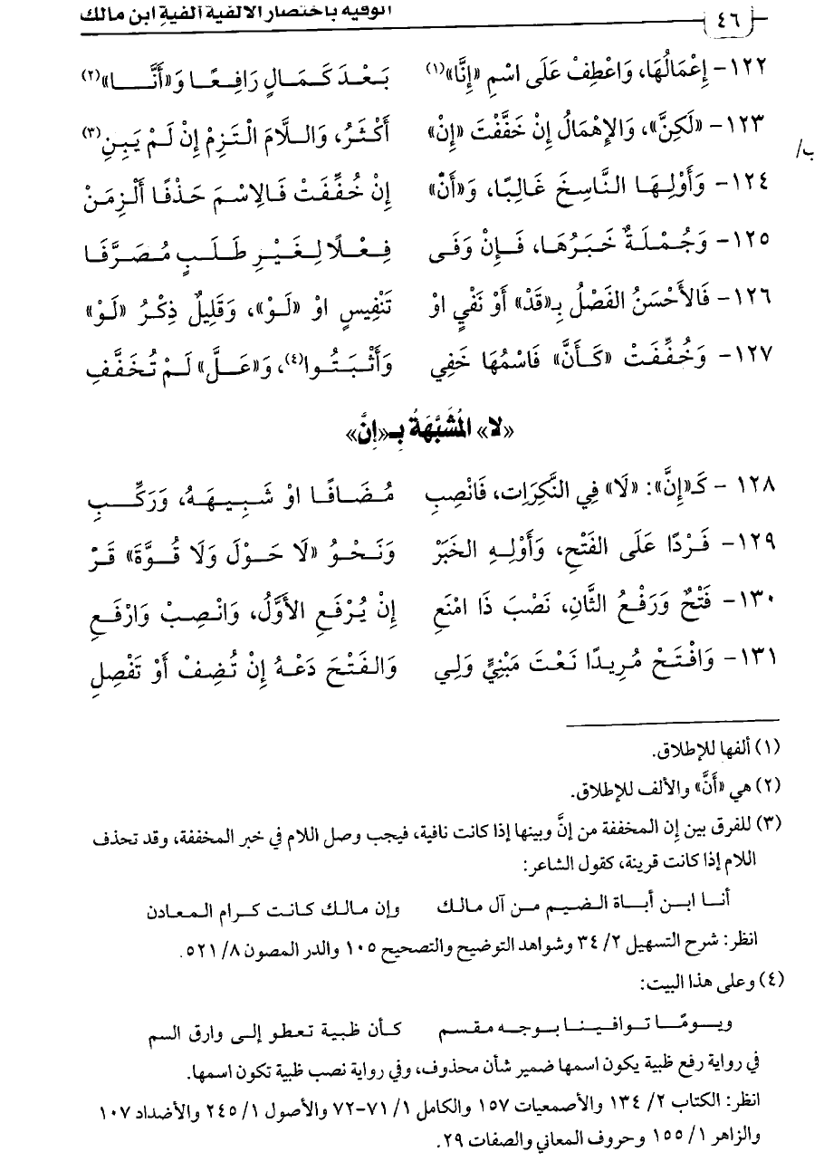 ١٢٣. "لَكِنَّ"، وَالإِهْمَالُ إِنْ خَفَّفْتَ "إِنّْ" ... أَكْثَرُ، وَاللَّامَ الْتَزِمْ إِنْ لَمْ يَبِنِ (¬٣)