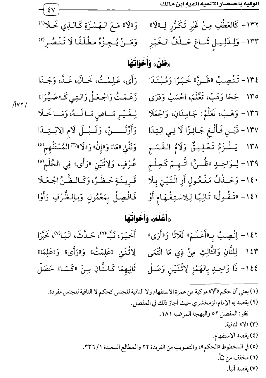١٣٤. تَنْصِبُ "ظَنَّ" خَبَرًا وَمُبْتَدَا ... رَأَى، عَلِمْتُ، خَالَ، عَدَّ، وَجَدَا