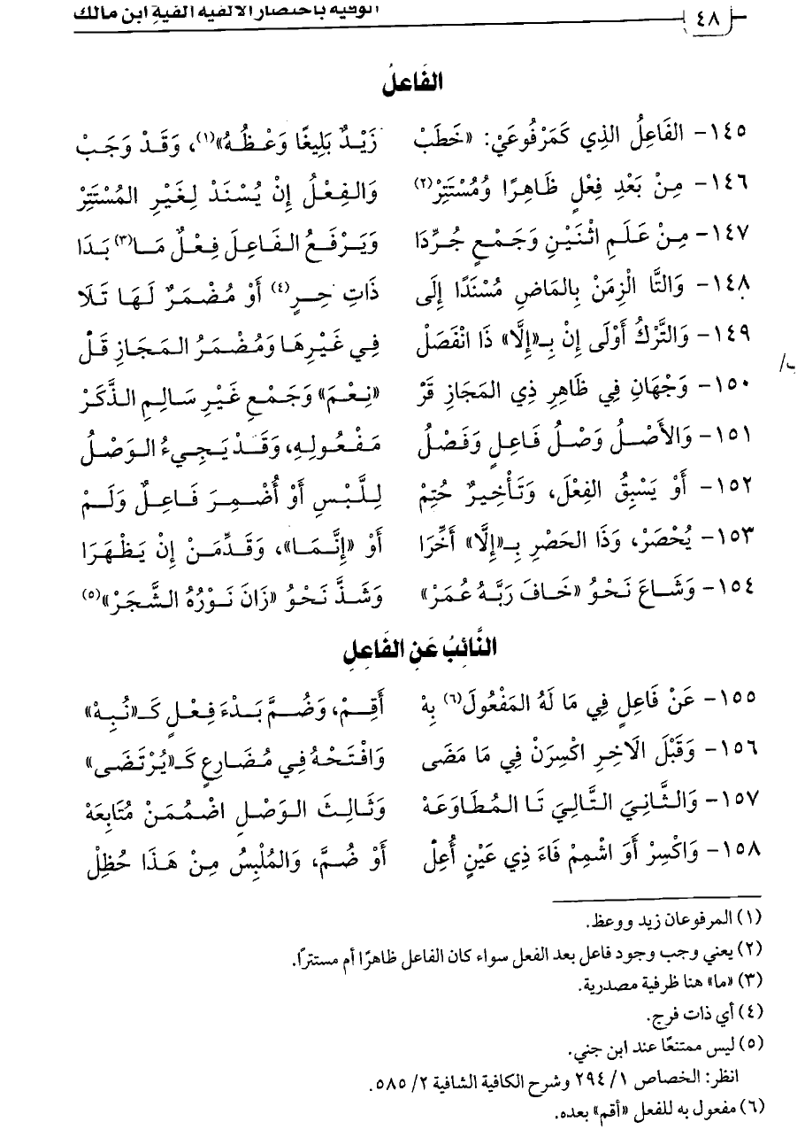 ١٤٧. مِنْ عَلَمِ اثْنَيْنِ وَجَمْعٍ جُرِّدَا ... وَيَرْفَعُ الفَاعِلَ فِعْلٌ مَا (¬٣) بَدَا