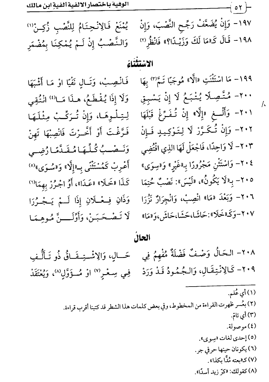 ٢٠٨. الحَالُ وَصْفٌ فَضْلَةٌ مُفْهِمُ فِي ... حَالٍ، وَالِاشْتِقَاقُ ذُو تَأَلُّفِ