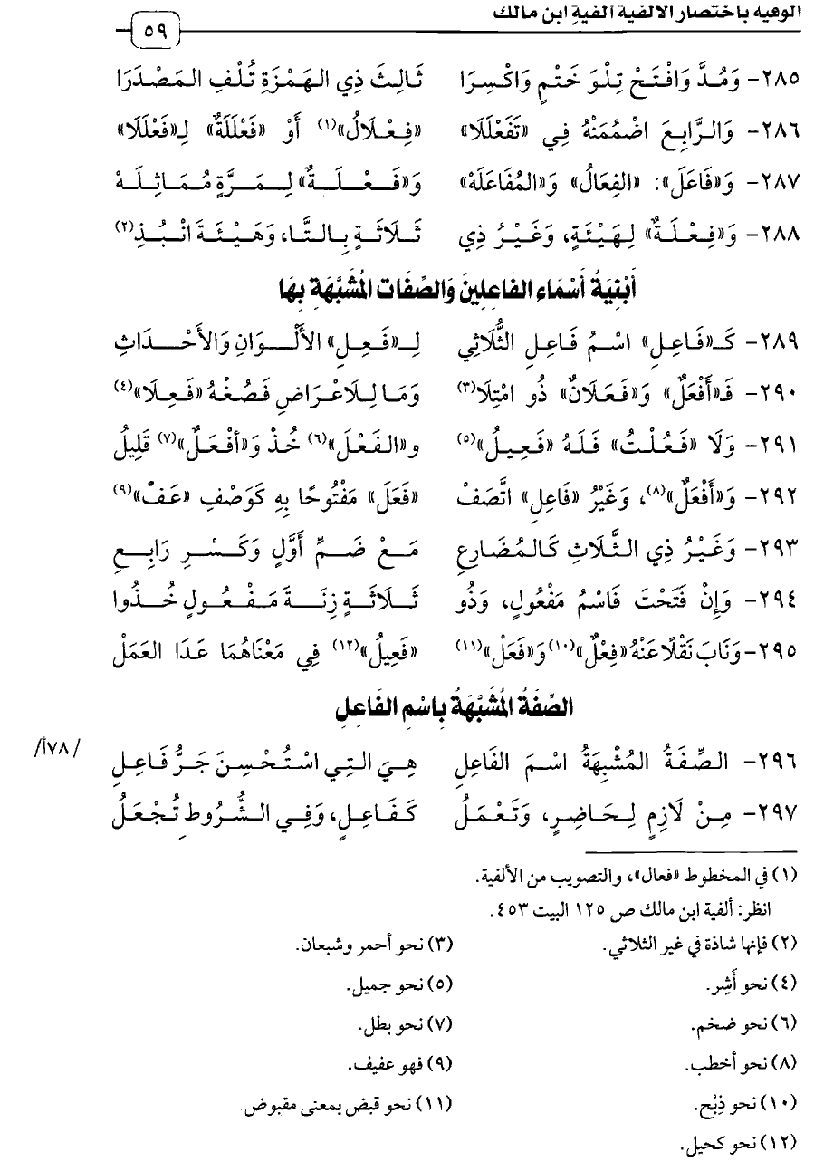 انظر: ألفية ابن مالك ص ١٢٥ البيت ٤٥٣.