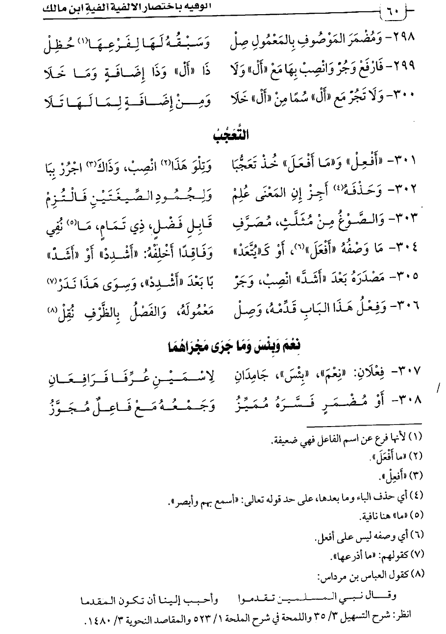 ٣٠٧. فِعْلَانِ: "نِعْمَ"، "بِئْسَ"، جَامِدَانِ ... لِاسْمَيْنِ عُرِّفَا فَرَافِعَانِ