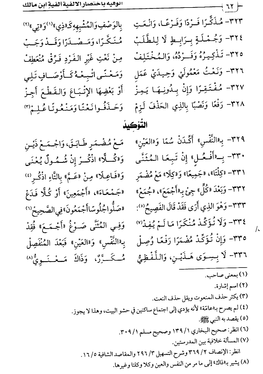 ٣٢٩. بِـ"النَّفْسِ" أَكِّدَنْ سُمًا وَ"العَيْنِ" ... مَعْ مُضْمَرٍ طَابَقَ، وَاجْمَعْ ذَيْنِ