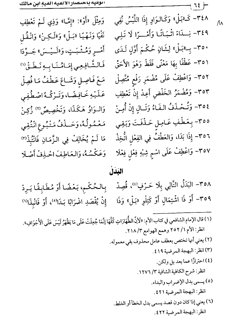 ٣٤٨. كَـ"بَلْ" وَكَالوَاوِ إِذَا اللَّبْسُ نُفِي ... وَمِثْلَ "أَوْ": "إِمَّا" وَذِي لَمْ تَعْطِفِ