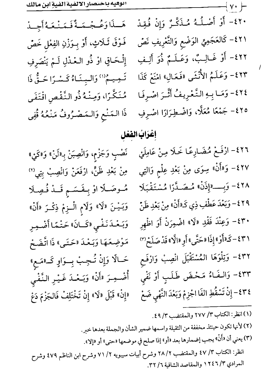 ٤٢٦. ارْفَعْ مُضَارِعًا خَلَا مِنْ عَامِلَيْ ... نَصْبٍ وَجَزْمٍ، وَانْصِبَنْ بِـ"لَنْ" وَ"كَيْ"