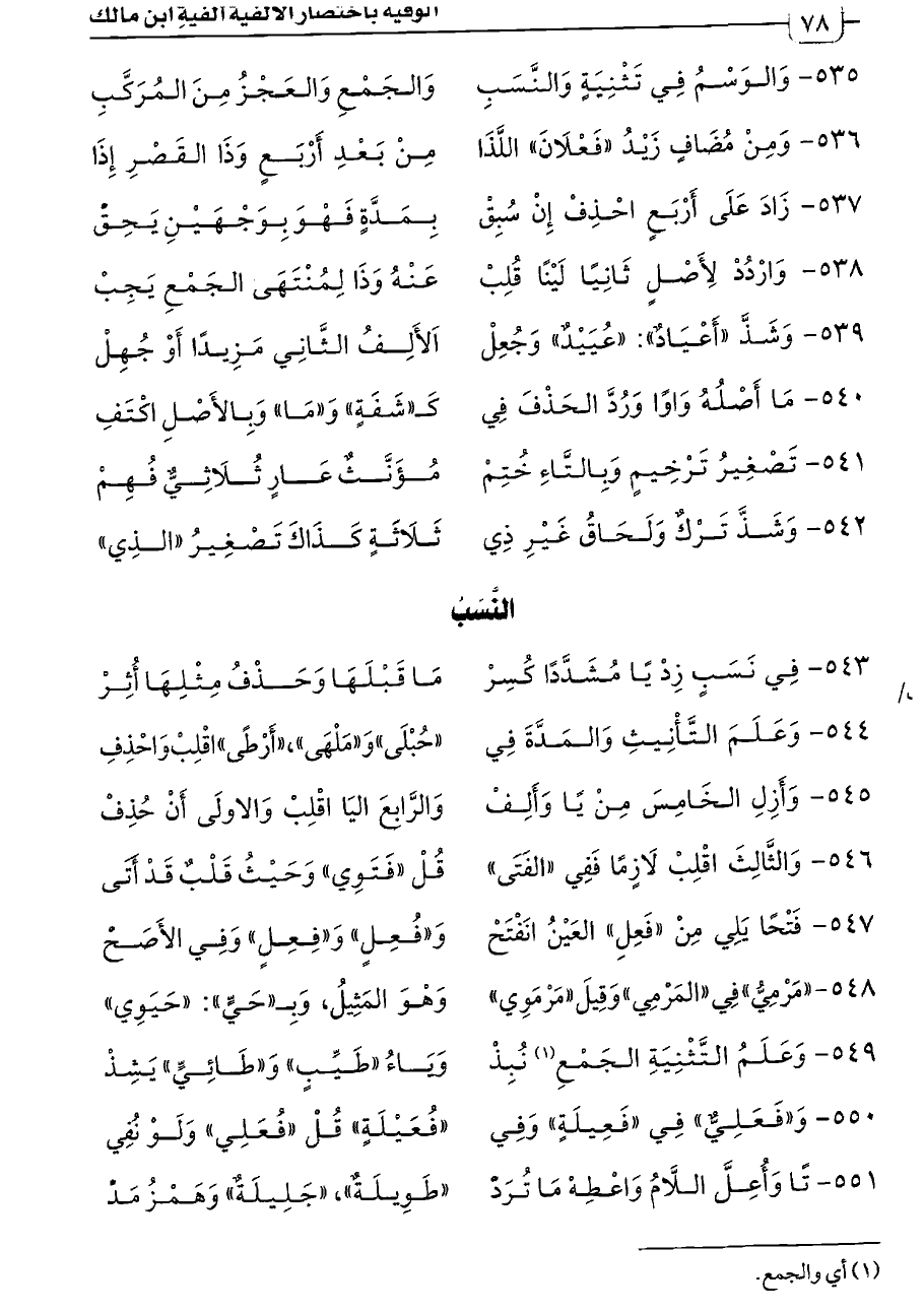٥٤٩. وَعَلَمُ التَّثْنِيَةِ الجَمْعِ (¬١) نُبِذْ ... وَيَاءُ "طَيِّبٍ" وَ"طَائِيٍّ" يَشِذْ