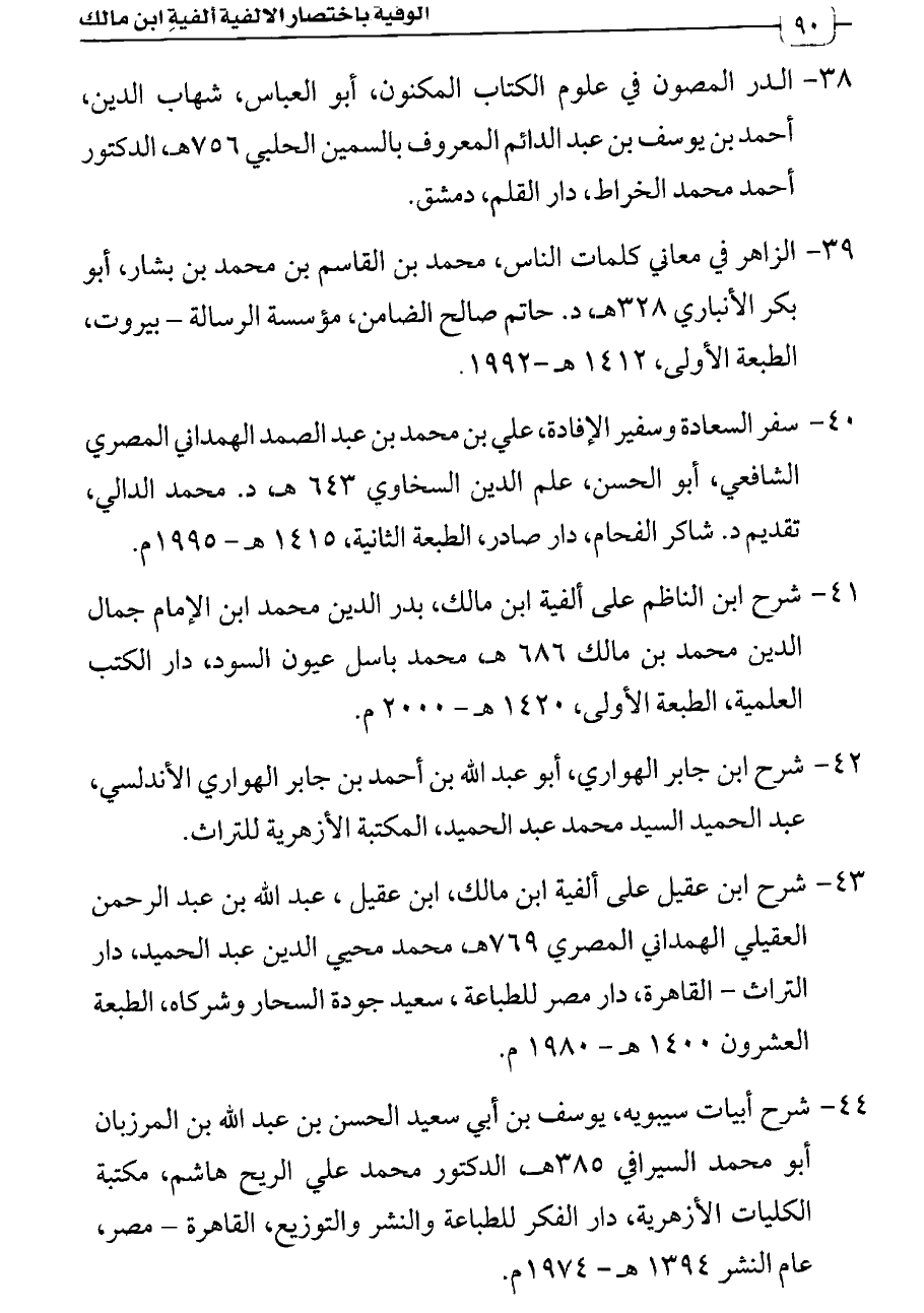 ٤٠. سفر السعادة وسفير الإفادة، علي بن محمد بن عبد الصمد الهمداني المصري الشافعي، أبو الحسن، علم الدين السخاوي ٦٤٣ هـ، د. محمد الدالي، تقديم د. شاكر الفحام، دار صادر، الطبعة الثانية، ١٤١٥ هـ - ١٩٩٥ م.