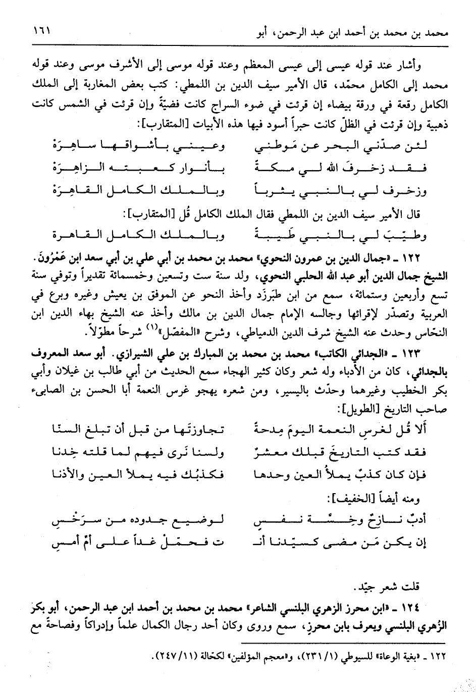 قَالَ الْأَمِير سيف الدّين ابْن اللمطي فَقَالَ الْملك الْكَامِل قل المتقارب