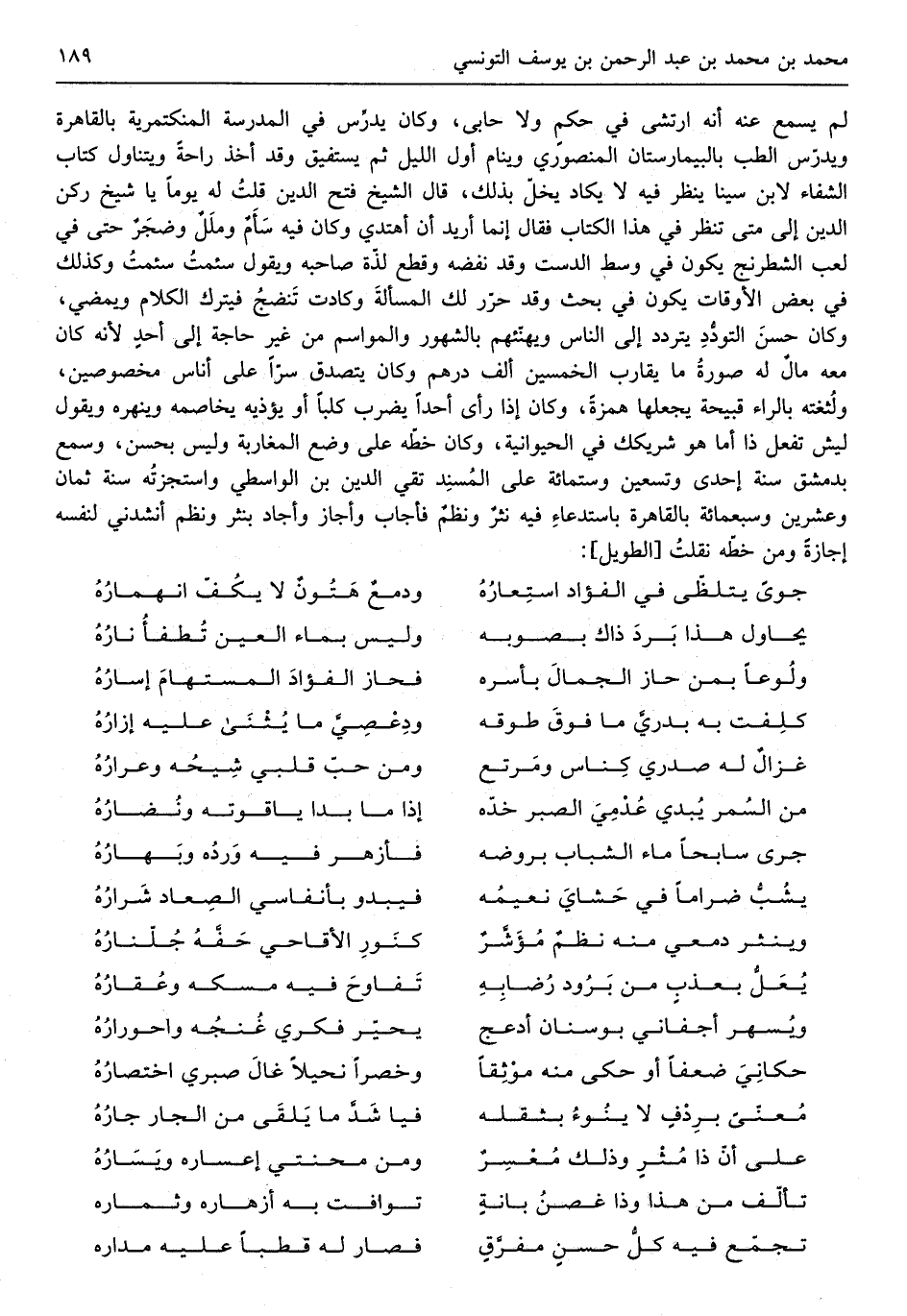(حكاني ضعفا أَو حكى مِنْهُ موثقًا ... وخصرا نحيلا غال صبري اختصاره)
