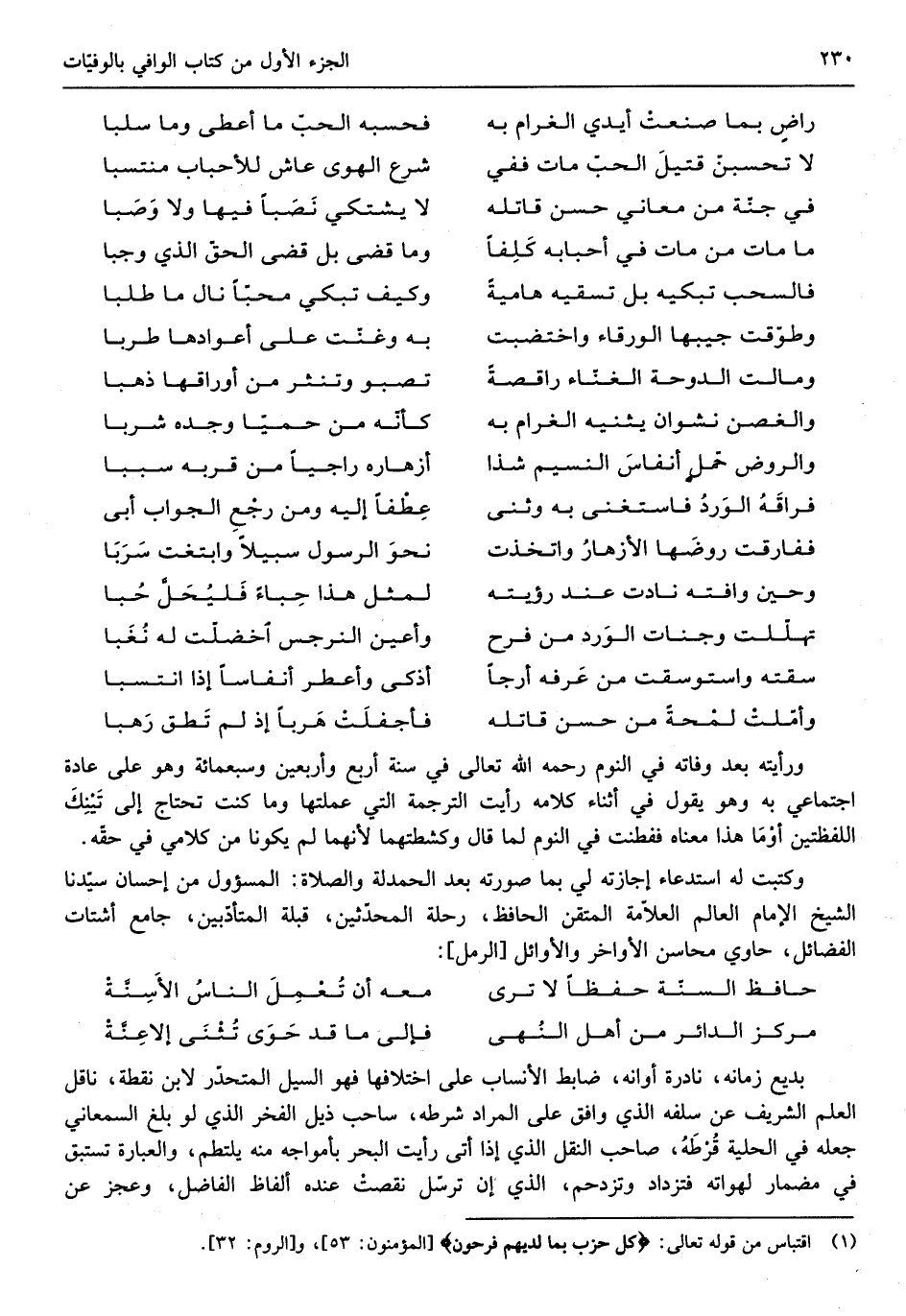 (مَا مَاتَ من مَاتَ فِي احبابه كلفاً ... وَمَا قضى بل قضى الْحق الَّذِي وجبا)