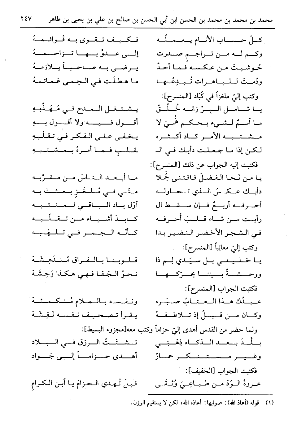 فَكتبت إِلَيْهِ الْجَواب عَن ذَلِك المنسرح