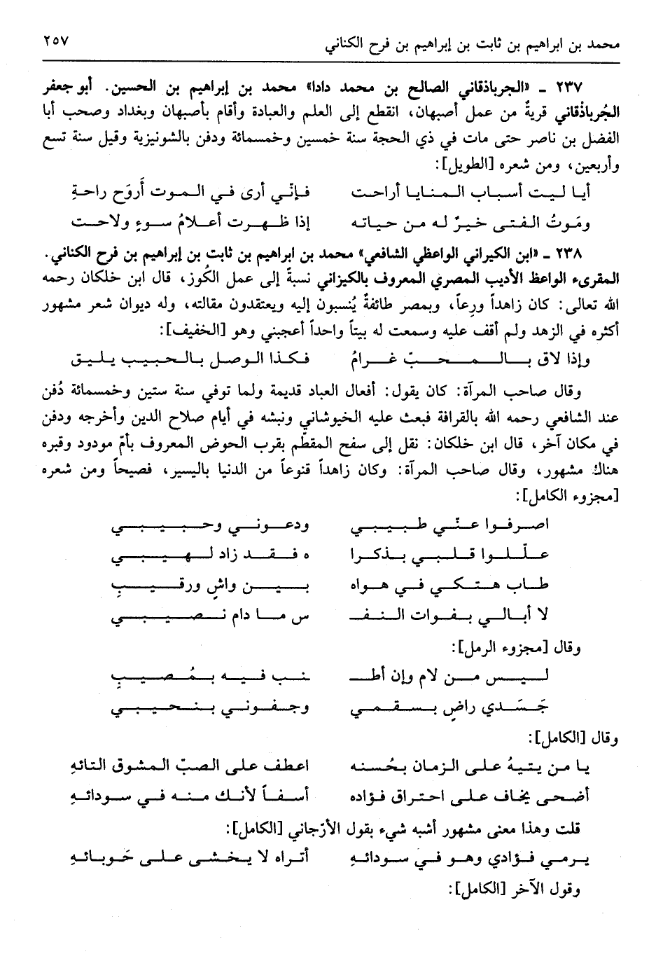 أَبُو جَعْفَر الجرباذقاني قَرْيَة من عمل أَصْبَهَان انْقَطع إِلَى الْعلم وَالْعِبَادَة وَأقَام بأصبهان وبغداد وَصَحب أَبَا الْفضل ابْن نَاصِر حَتَّى مَاتَ فِي ذِي الْحجَّة سنة خمسين وَخمْس مائَة وَدفن بالشونيزية وَقيل سنة تسع وَأَرْبَعين وَمن شعره الطَّوِيل