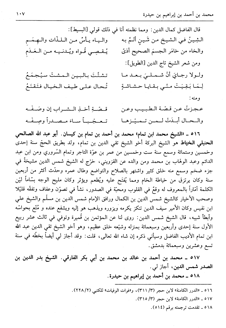 3 - (الشَّيْخ مُحَمَّد ابْن تَمام مُحَمَّد بن أَحْمد بن تَمام بن كيسَان أَبُو عبد الله الصَّالِحِي الْحَنْبَلِيّ)