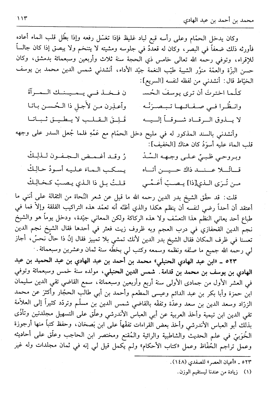 3 - (ابْن عبد الْهَادِي الْحَنْبَلِيّ مُحَمَّد بن أَحْمد بن عبد الْهَادِي ابْن عبد الحميد بن عبد الْهَادِي بن)
