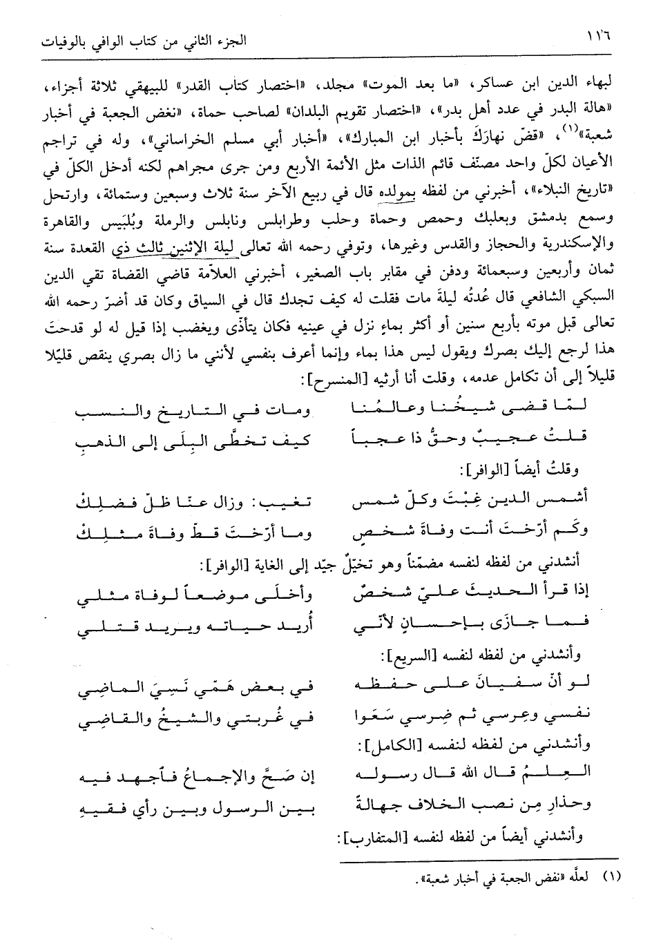 (لما قضى شَيخنَا وعالمنا ... وَمَات فِي التَّارِيخ وَالنّسب)