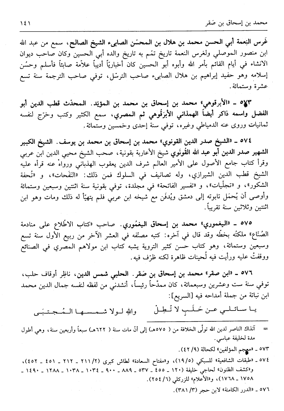 3 - (ابْن صقر مُحَمَّد بن اسحق بن صقر الْحلَبِي شمس الدّين)