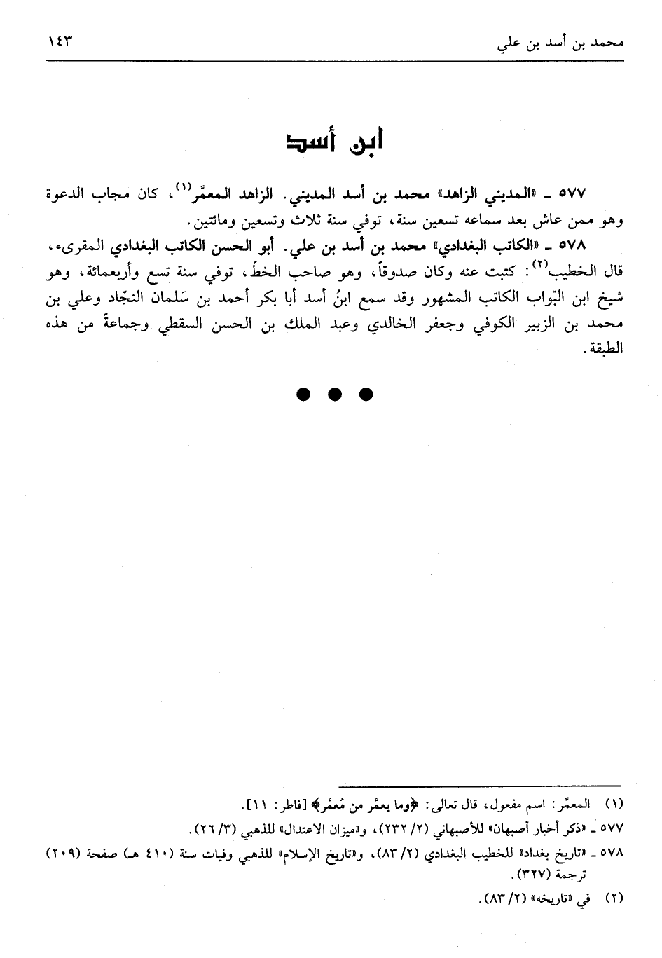 3 - (الْكَاتِب الْبَغْدَادِيّ مُحَمَّد بن أَسد بن عَليّ أَبُو الْحسن)