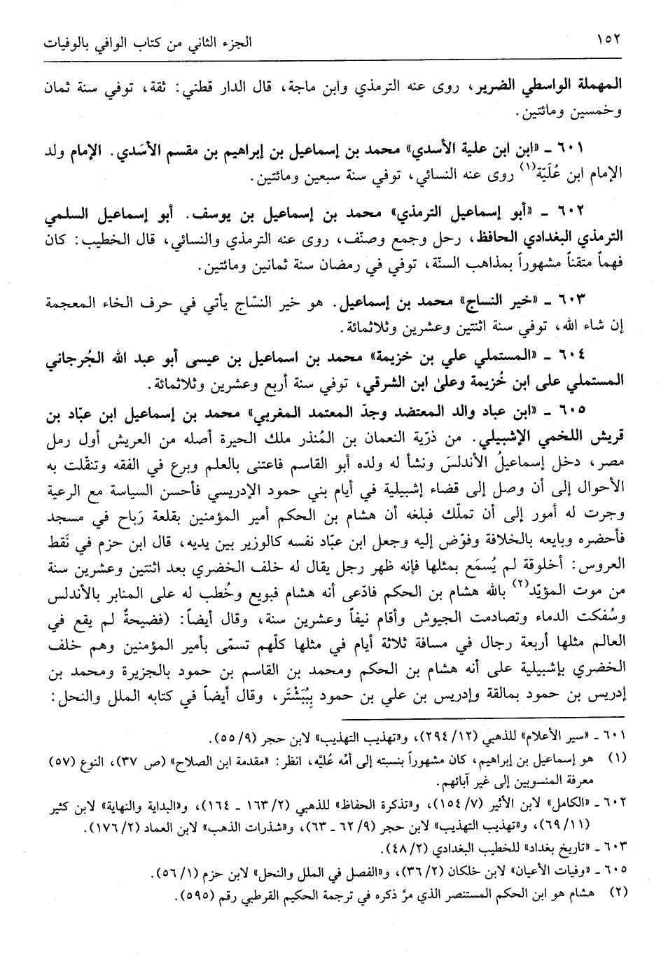 ابْن عباد وَالِد المعتضد وجد الْمُعْتَمد المغربي مُحَمَّد بن اسمعيل ابْن عباد بن قُرَيْش اللَّخْمِيّ الإشبيلي من ذُرِّيَّة النُّعْمَان بن الْمُنْذر ملك الْحيرَة اصله من الْعَريش أول رمل مصر دخل اسمعيل الأندلس وَنَشَأ لَهُ وَلَده أَبُو الْقسم فاعتني بِالْعلمِ وبرع فِي الْفِقْه وتنقلت بِهِ الْأَحْوَال إِلَى أَن وصل إِلَى قَضَاء اشبيلية فِي أَيَّام بني حمود الأدريسي فَأحْسن السياسة مَعَ الرّعية وَجَرت لَهُ أُمُور إِلَى أَن تملك فَبَلغهُ أَن هِشَام بن الحكم أَمِير الْمُؤمنِينَ بقلعة رَبَاح فِي مَسْجِد فاحضره وَبَايَعَهُ بالخلافة وفوض إِلَيْهِ وَجعل ابْن عباد نَفسه كالوزير بَين يَدَيْهِ قَالَ ابْن حزم فِي نقط الْعَرُوس اخلوقة لم يسمع بِمِثْلِهَا فَإِنَّهُ ظهر رجل يُقَال لَهُ خلف الخضري بعد اثْنَتَيْنِ وَعشْرين سنة من موت الْمُؤَيد بِاللَّه هِشَام بن الحكم فَادّعى أَنه هِشَام فبويع وخطب لَهُ على المنابر بالأندلس وسكفت الدِّمَاء وتصادمت الجيوش وَأقَام نيفا وَعشْرين سنة وَقَالَ أَيْضا فضجيهة لم يَقع فِي الْعَالم مثلهَا أَرْبَعَة رجال فِي مَسَافَة ثلثة أَيَّام فِي مثلهَا كلهم تسمى بأمير الْمُؤمنِينَ وهم خلف الخضري بإشبيلية على أَنه هِشَام بن الحكم وَمُحَمّد بن الْقسم بن حمود بالجزيرة وَمُحَمّد بن إِدْرِيس بن حمود بمالقة وَإِدْرِيس بن عَليّ بن حمود ببشتر وَقَالَ أَيْضا فِي كِتَابه الْملَل والنحل
