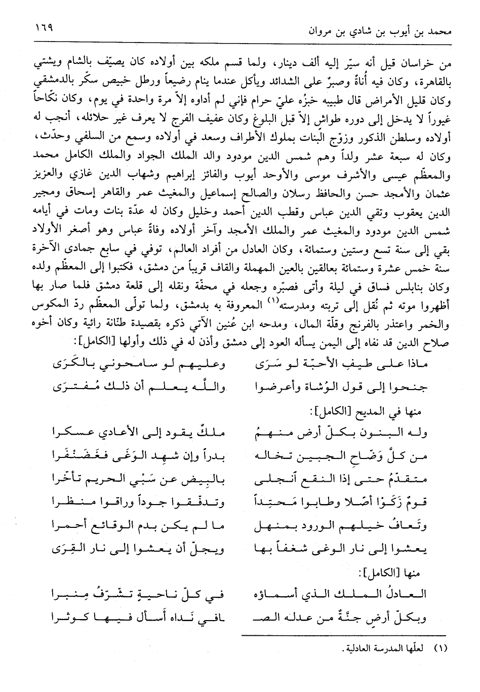 (الْعَادِل الْملك الَّذِي اسماؤه ... فِي كل نَاحيَة تشرف منبرا)