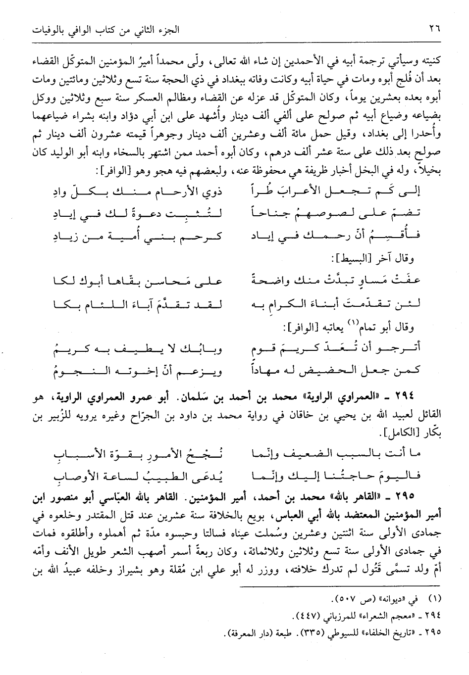 هُوَ القايل لِعبيد الله بن يحيى بن خاقَان فِي رِوَايَة مُحَمَّد بن دَاوُد بن الْجراح وَغَيره يرويهِ للزبير بن بكار)