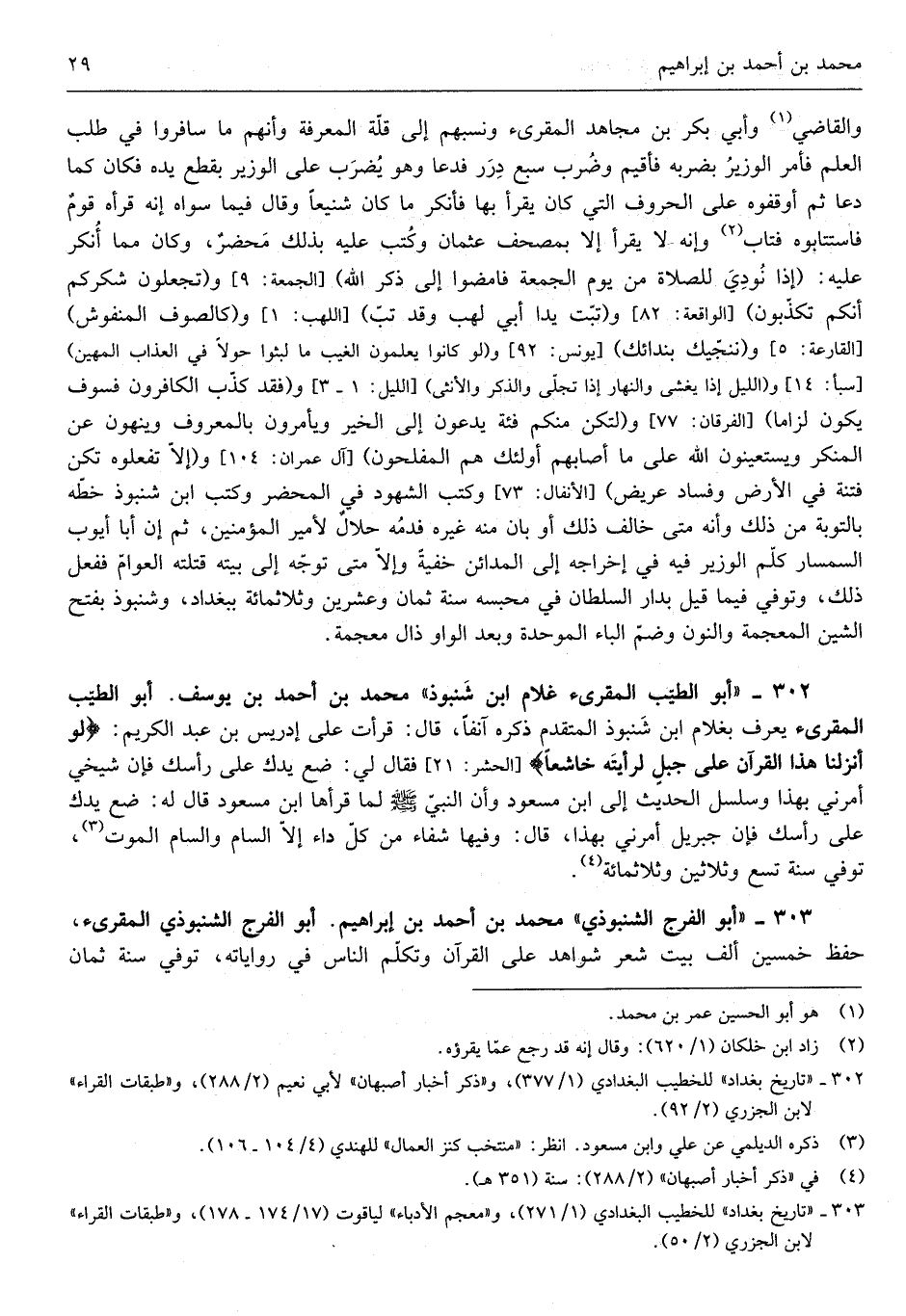 3 - (أَبُو الْفرج الشنبوذي مُحَمَّد بن أَحْمد بن ابرهيم أَبُو الْفرج الشنبوذي المقرىء)