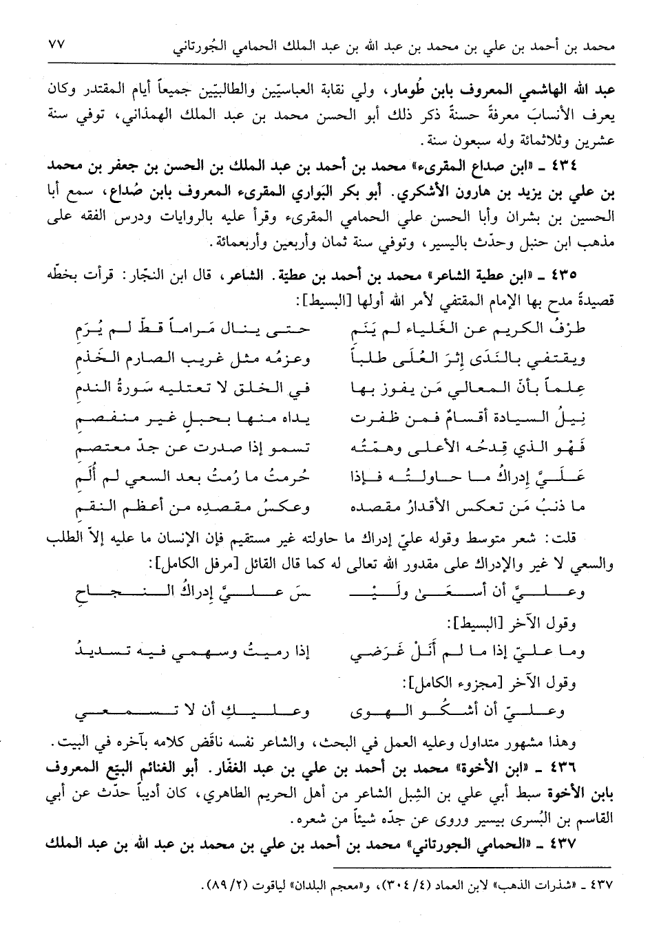 الْهَاشِمِي الْمَعْرُوف بِابْن طومار ولي نقابة العباسيين والطالبيين جَمِيعًا أَيَّام المقتدر وَكَانَ يعرف الْأَنْسَاب معرفَة حَسَنَة ذكر ذَلِك أَبُو الْحسن مُحَمَّد بن عبد الْملك الهمذاني توفّي سنة عشْرين وَثلث ماية وَله سَبْعُونَ سنة