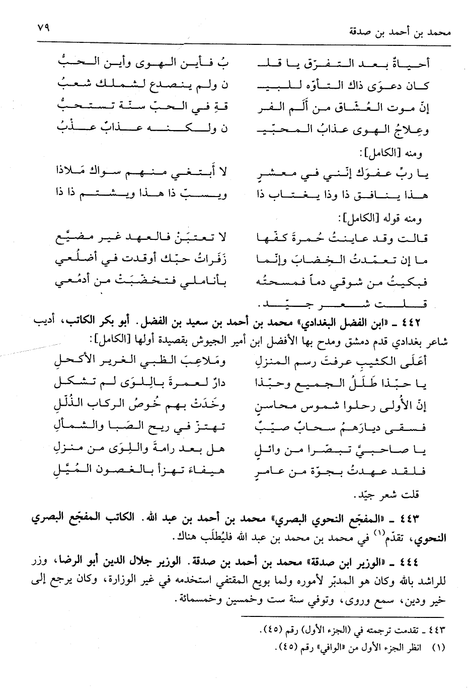 3 - (الْوَزير ابْن صَدَقَة مُحَمَّد بن أَحْمد بن صَدَقَة الْوَزير جلال الدّين أَبُو الرِّضَا)