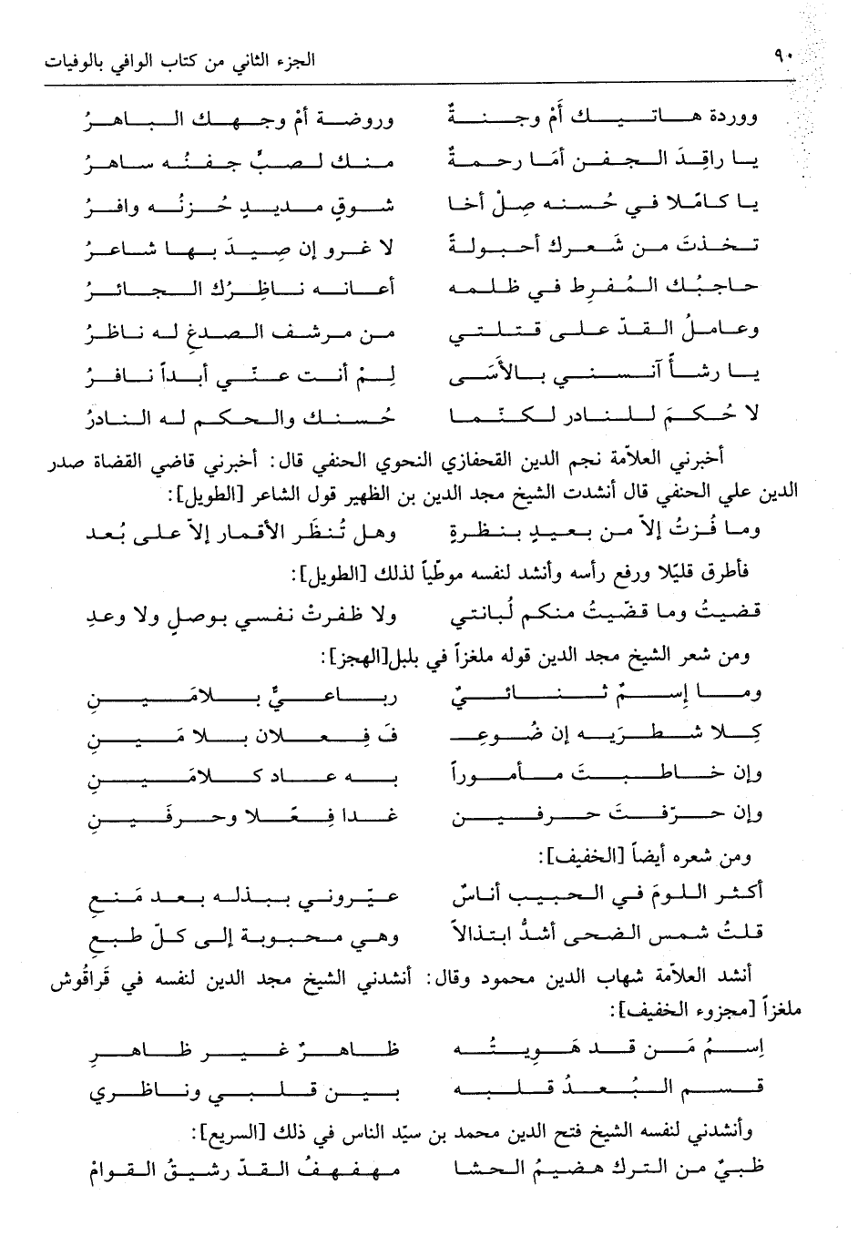أَخْبرنِي الْعَلامَة نجم الدّين القحفازي النَّحْوِيّ الْحَنَفِيّ قَالَ أَخْبرنِي قَاضِي الْقُضَاة صدر الدّين على الْحَنَفِيّ قَالَ أنشدت الشَّيْخ مجد الدّين ابْن الظهير قَول الشَّاعِر