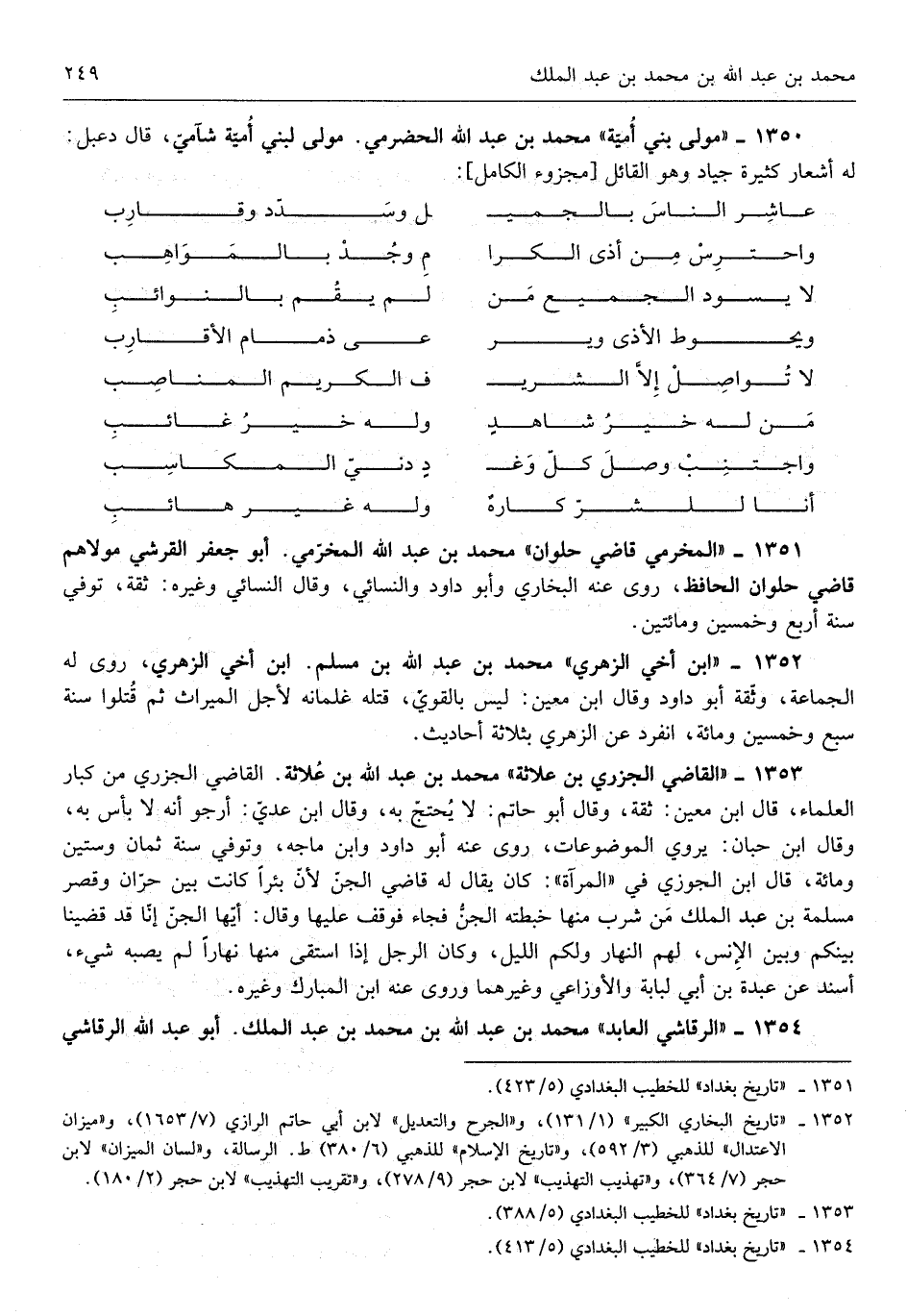 مولى بني أُميَّة مُحَمَّد بن عبد الله الْحَضْرَمِيّ مولى لبني أُميَّة شَامي قَالَ دعبل لَهُ أشعار كثية جِيَاد وَهُوَ القايل