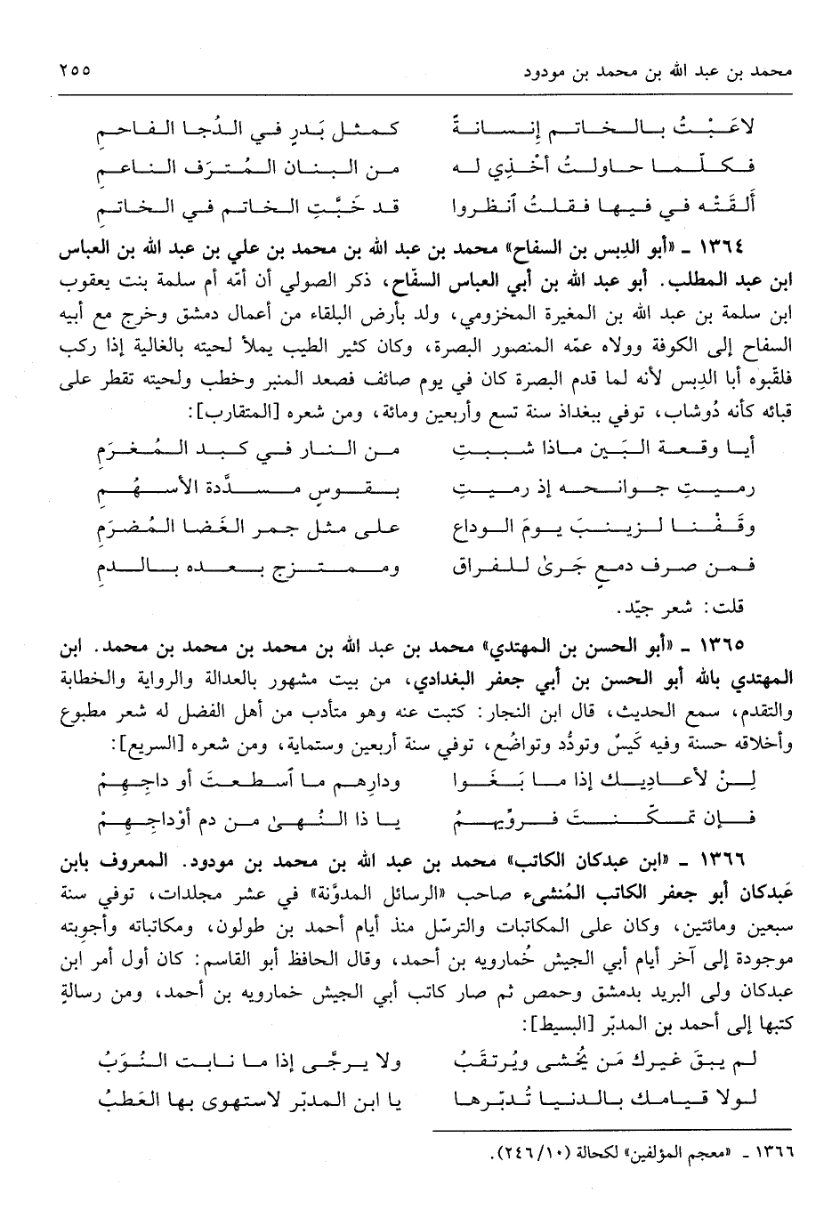 ابْن عبد كَانَ الْكَاتِب مُحَمَّد بن عبد الله بن مُحَمَّد بن مودود الْمَعْرُوف بِابْن عبد كَانَ أَبُو جَعْفَر الْكَاتِب المنشئ صَاحب الرسايل الْمُدَوَّنَة فِي عشر مجلدات توفّي سنة سبعين وماتين وَكَانَ على المكاتبات والترسل مُنْذُ أَيَّام أَحْمد بن طولون ومكاتباته وأجوبته مَوْجُودَة إِلَى آخر أَيَّام أبي الْجَيْش خمارويه بن أَحْمد وَقَالَ الْحَافِظ أَبُو الْقسم كَانَ أول أَمر ابْن عبد كَانَ أَنه ولى الْبَرِيد بِدِمَشْق وحمص ثمَّ صَار كَاتب أبي الْجَيْش خمارويه بن أَحْمد وَمن رِسَالَة كتبهَا إِلَى أَحْمد بن الْمُدبر