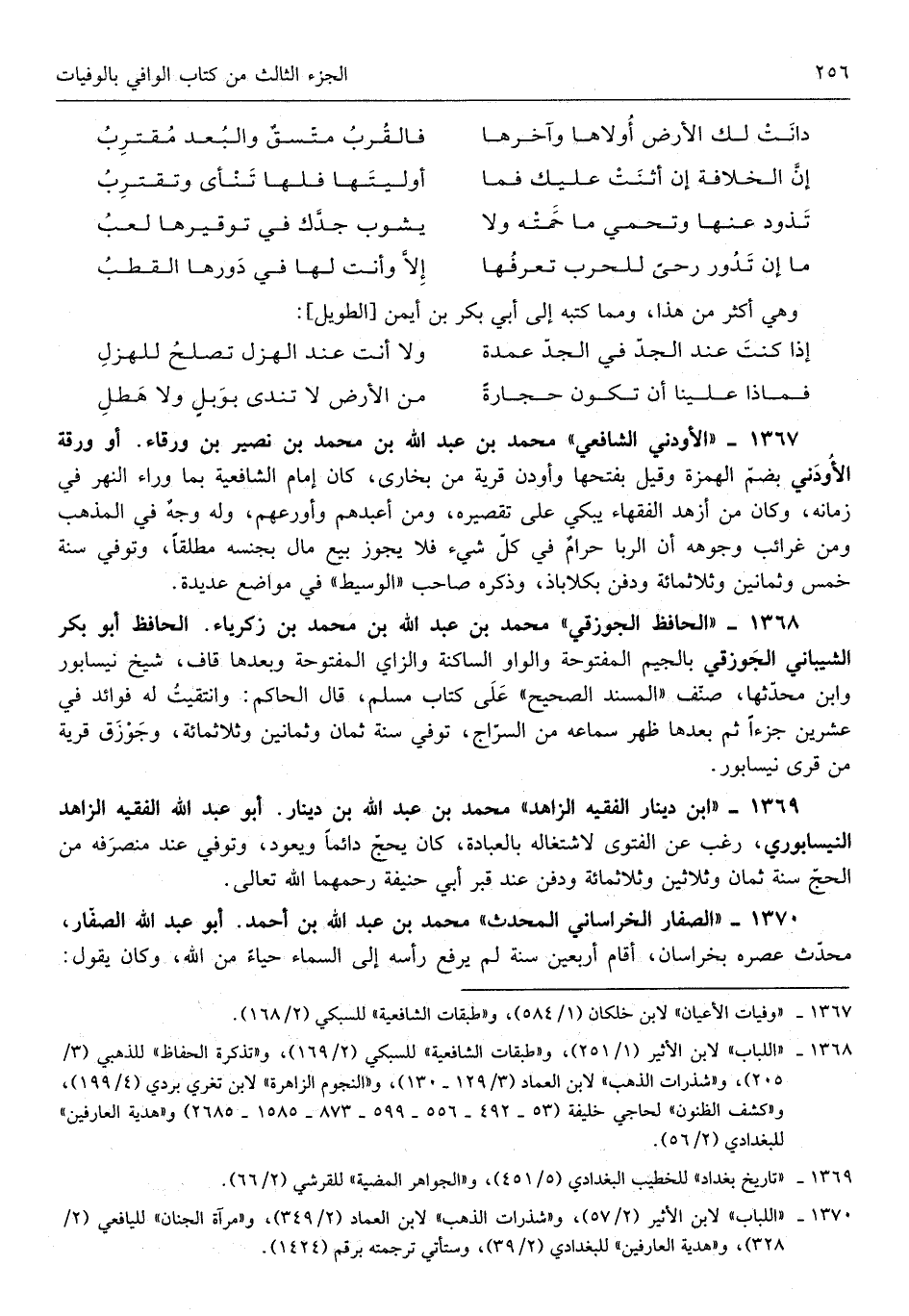 ابْن دِينَار الْفَقِيه الزَّاهِد مُحَمَّد بن عبد الله بن دِينَار أَبُو عبد الله الْفَقِيه الزَّاهِد النَّيْسَابُورِي رغب عَن الْفَتْوَى لاشتغاله بِالْعبَادَة كَانَ يحجّ دايماً وَيعود وَتُوفِّي عِنْد مُنْصَرفه من الْحَج سنة ثمن وثلثين وَثلث ماية وَدفن عِنْد قبر أبي حنيفَة رحمهمَا الله تَعَالَى