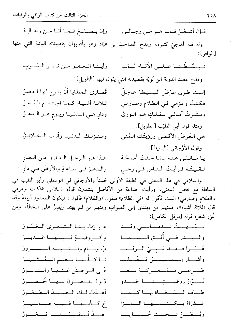 والسلامي فِي هَذَا الْمَعْنى فِي الطَّبَقَة الأولى حسنا والأرجاني فِي الْوُسْطَى وأبى الطّيب فِي)