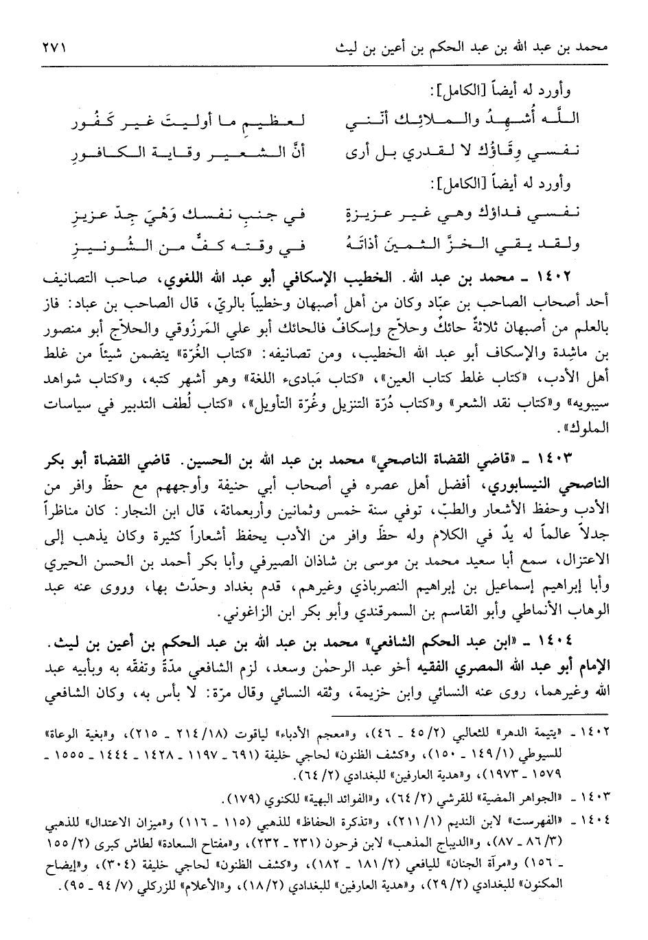 قَاضِي الْقُضَاة الناصحي مُحَمَّد بن عبد الله بن الْحُسَيْن قَاضِي الْقُضَاة أَبُو بكر الناصحي النَّيْسَابُورِي أفضل أهل عصره فِي أَصْحَاب أبي حنيفَة وأوجههم مَعَ حَظّ وافر من الْأَدَب وَحفظ الْأَشْعَار والطب توفى سنة خمس وَثَمَانِينَ وَأَرْبع ماية قَالَ ابْن النجار كَانَ مناظراً جدلاً عَالما لَهُ يَد فِي الْكَلَام وَله حَظّ وافر من الْأَدَب يحفظ أشعاراً كَثِيرَة وَكَانَ يذهب إِلَى)