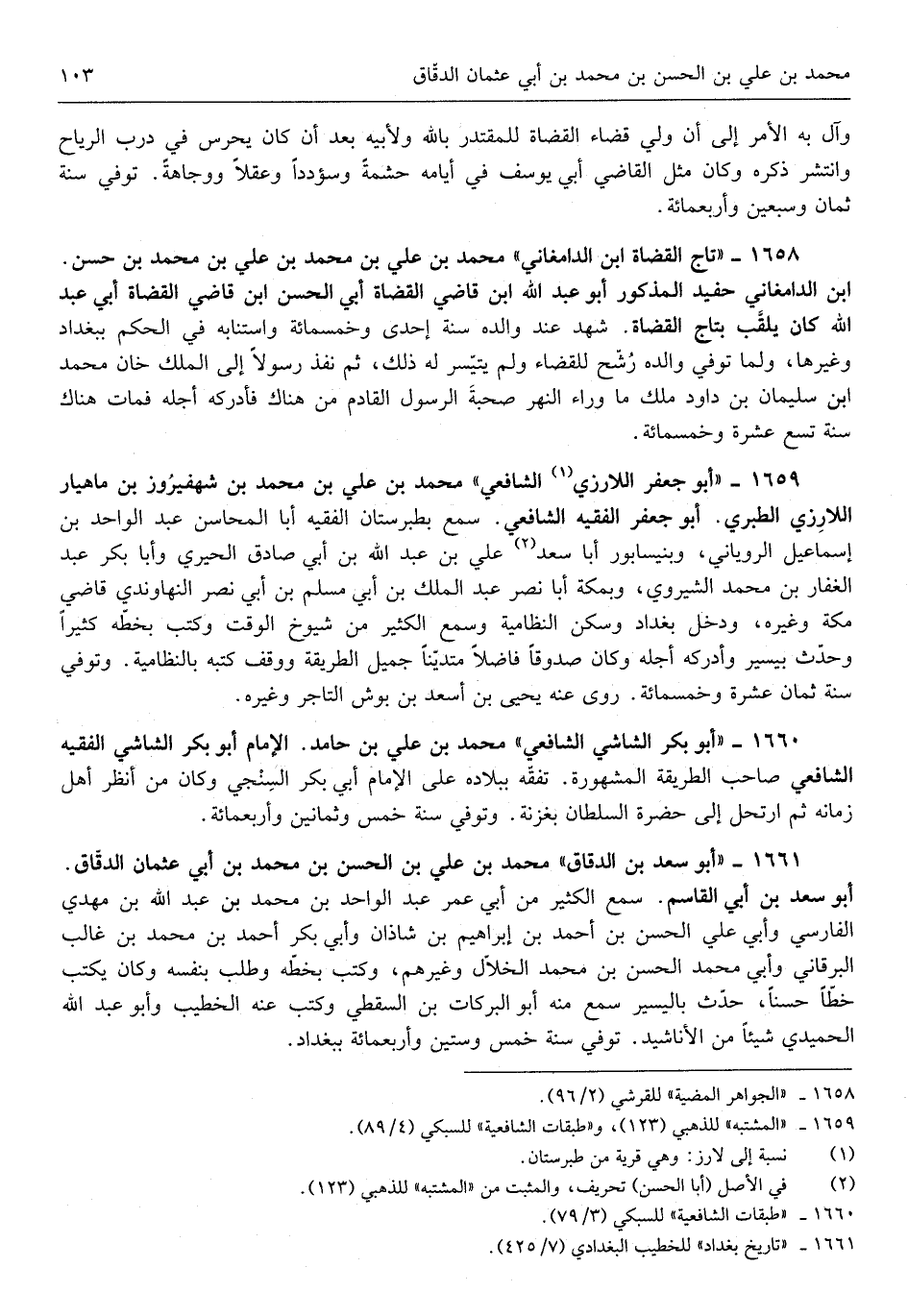 تَاج الْقُضَاة ابْن الدَّامغَانِي مُحَمَّد بن عَليّ بن مُحَمَّد بن عَليّ بن ممد بن حسن ابْن الدَّامغَانِي حفيد الْمَذْكُور ابو عبد الله ابْن قَاضِي الْقُضَاة أبي الْحسن ابْن قَاضِي الْقُضَاة أبي عبد الله كَانَ يلقب بتاج الْقُضَاة)