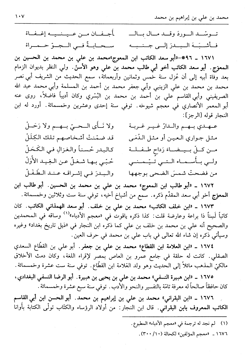 توفّي سنة إِحْدَى وَعشْرين وَخمْس مائَة أورد بِهِ ابْن النجار قَوْله)