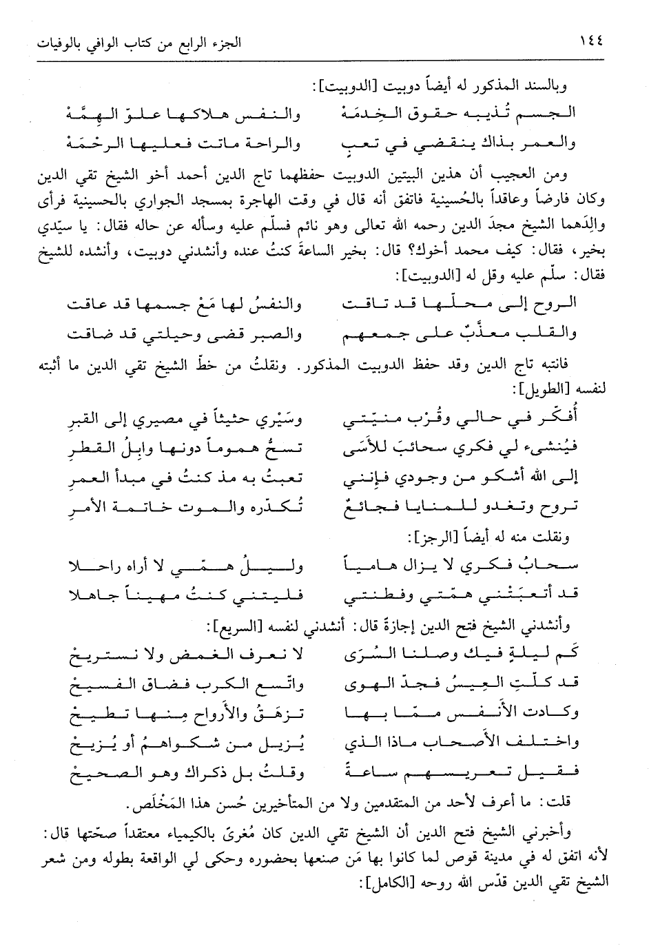 فانتبه تَاج الدّين وَقد حفظ الدوبيت الْمَذْكُور ونقلت من خطّ الشَّيْخ تَقِيّ الدّين مَا أثْبته لنَفسِهِ