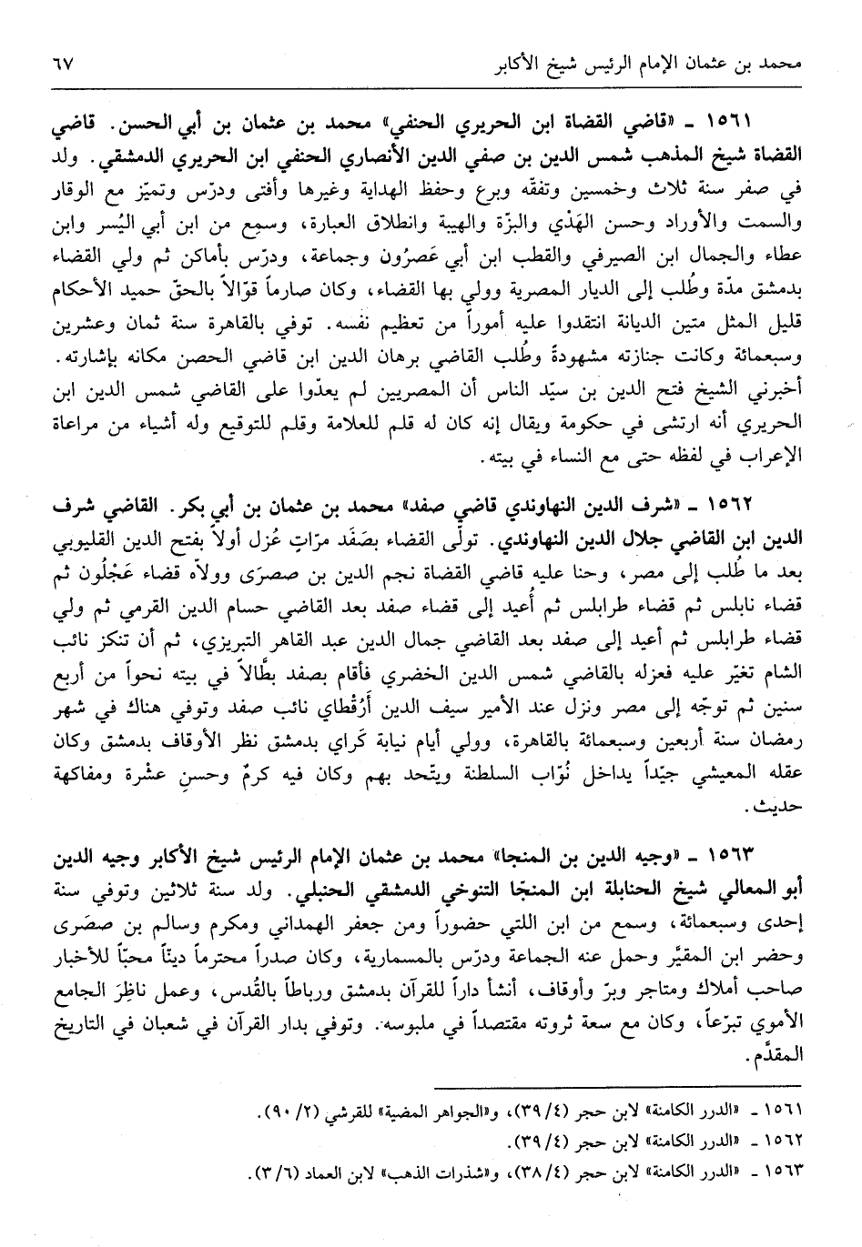 قَاضِي الْقُضَاة ابْن الحريري الْحَنَفِيّ مُحَمَّد بن عُثْمَان بن أبي الْحسن اقضي الْقُضَاة شيخ الْمَذْهَب شمس الدّين ابْن صفي الدّين الْأنْصَارِيّ الْحَنَفِيّ ابْن الحريري الدِّمَشْقِي
