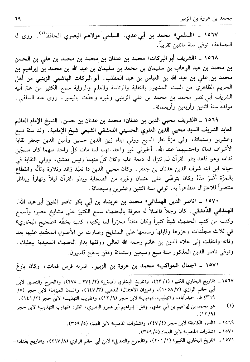 الشريف أَبُو البركات مُحَمَّد بن عدنان بن مُحَمَّد بن عَليّ بن الْحسن بن مُحَمَّد بن عبد الْوَهَّاب بن سُلَيْمَان بن مُحَمَّد بن سُلَيْمَان بن عبد الله بن مُحَمَّد بن إِبْرَاهِيم بن مُحَمَّد بن عَليّ بن عبد الله)