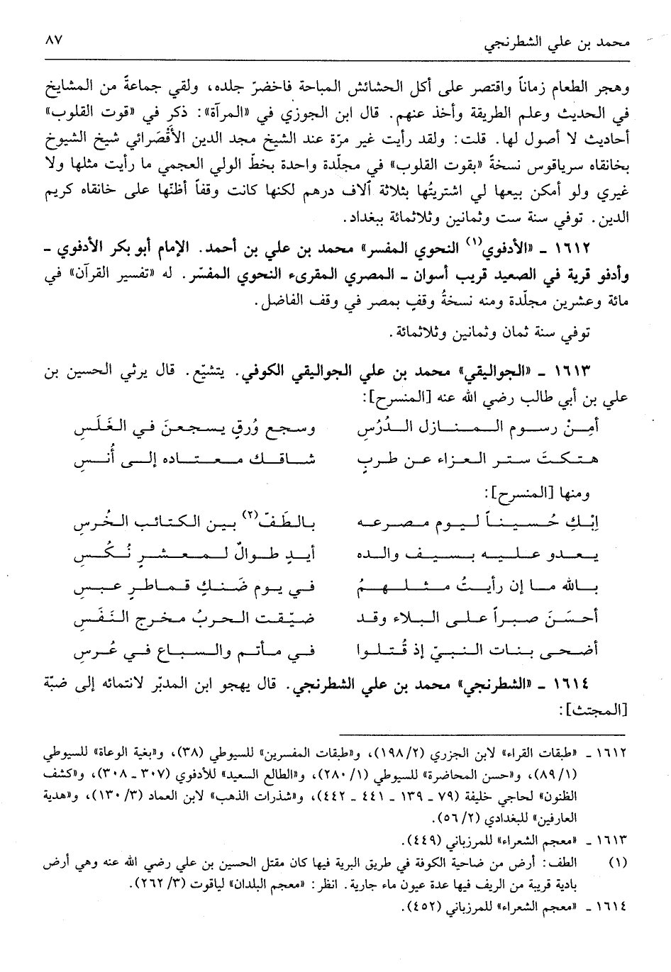 الجواليقي مُحَمَّد بن عَليّ الجواليقي الْكُوفِي يتشيع قَالَ يرثي الْحُسَيْن بن عَليّ بن أبي طَالب رَضِي الله عَنهُ